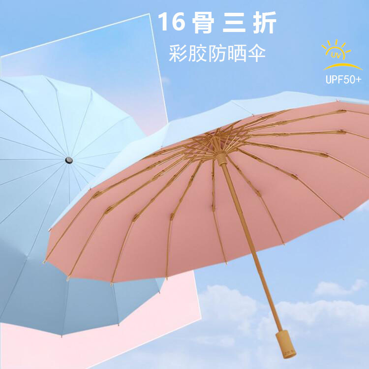 71TX umbrella women's dual-use large 16-bone folding umbrella color glue UV-proof sunshade advertising umbrella
