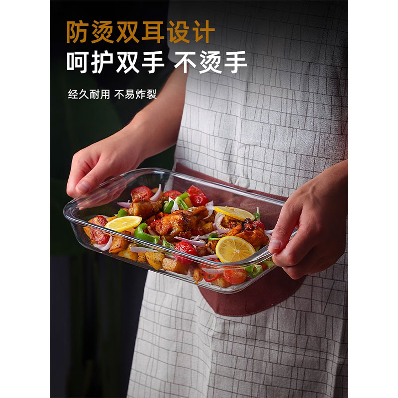 71TX2024 new steamed fish plate household glass baking plate rectangular dish mop plate microwave oven oven