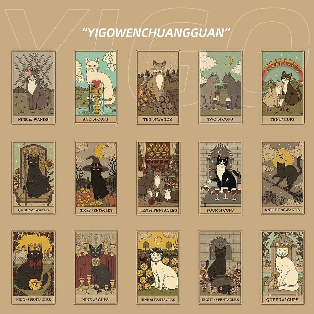 72 European and American retro cat tarot stickers, mobile phone case, ledger, iPad computer decoration waterproof stickers