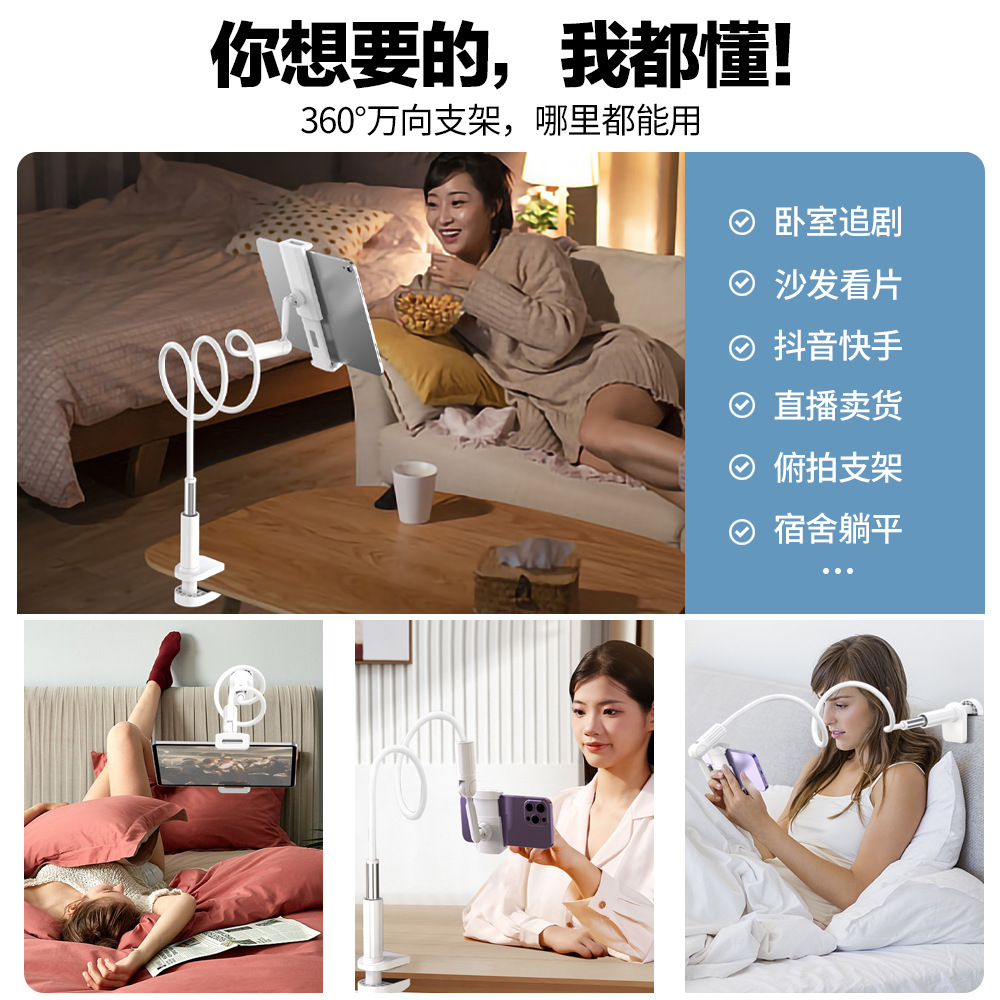 720-degree double-shaft spiral lazyhead bedside bracket flat bedside computer support bracket cantilever aluminum alloy reinforcement
