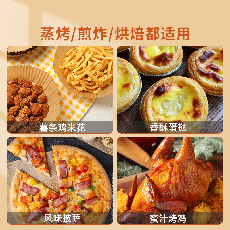 72N Air Fryer Paper Pad Barbecue Paper Round Oven Baking Silicone Oil Paper Household Disposable Anti-sticking No-Wash