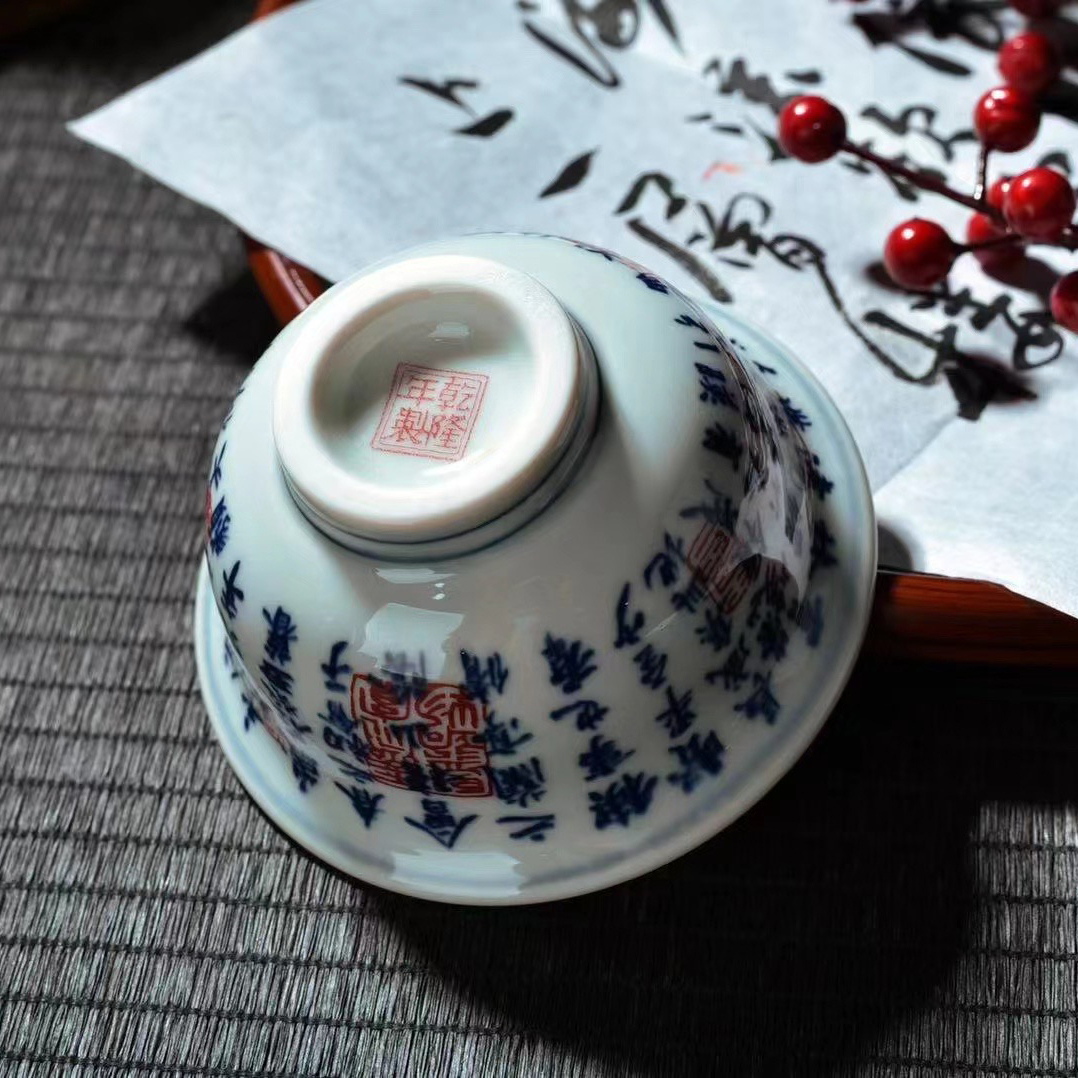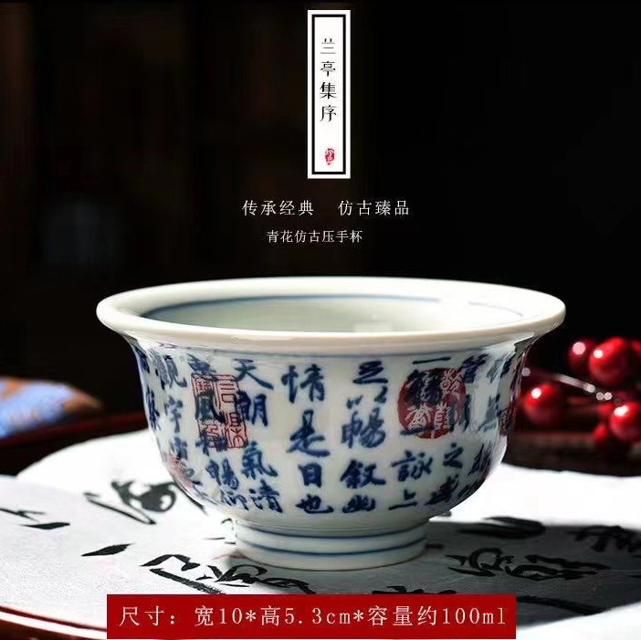 | nameOriginal | 72N Blue and White Porcelain Antique Tea Cup Qianlong Pressing Hand Cup Lanting Collection Sequence Tea Lug Large Personal Cup Ceramic Master Cup |
