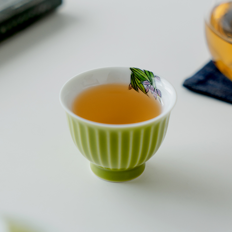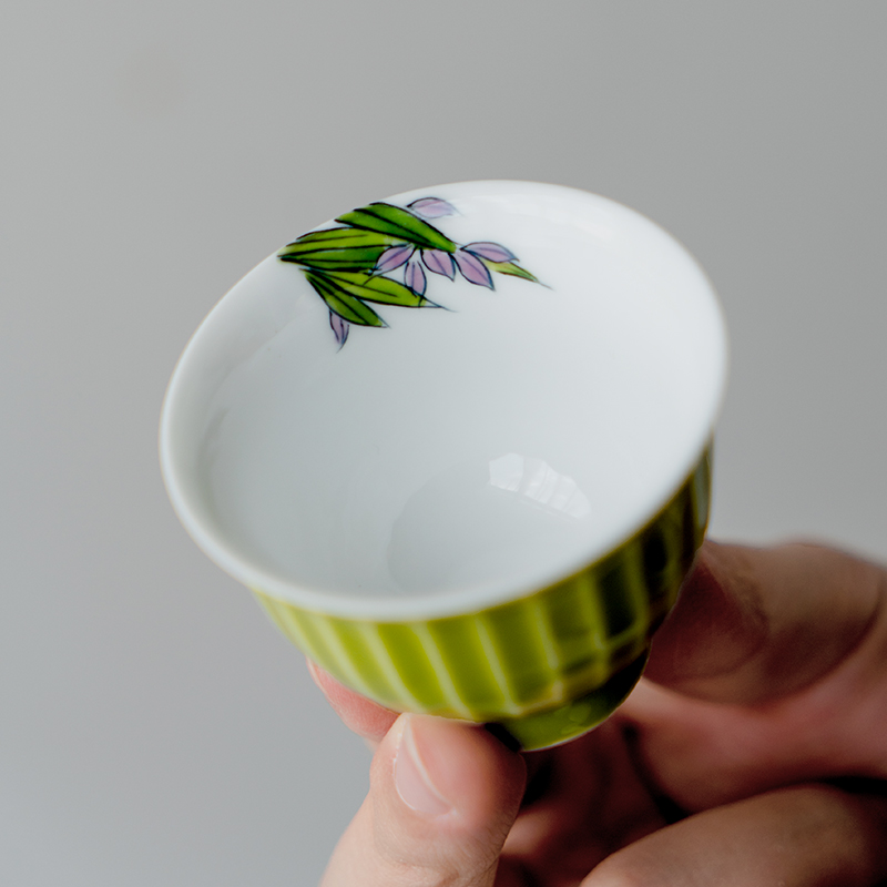 72N Pure Hand-painted Orchid Sophora japonica Green Chrysanthemum Flap Round Mouth Tea Cup Tasting Cup Single Household Ceramic Master Cup Kung Fu