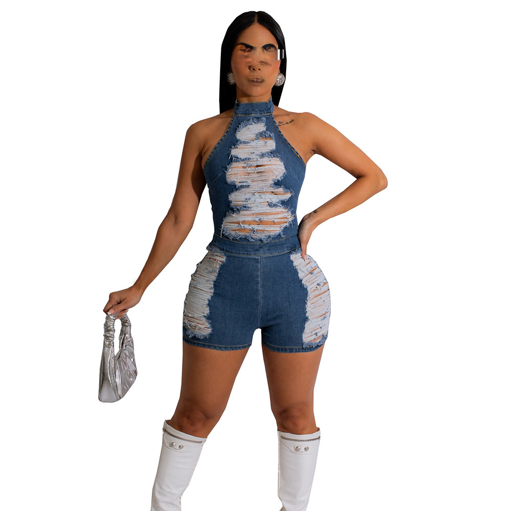 | nameOriginal | 7636JR European and American Women's Dress Nazada 2023 Spring and Summer Tight Sexy Hollow Wash Water Denim High Elastic One-piece Suit |