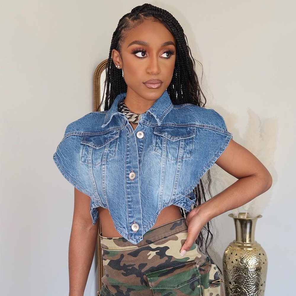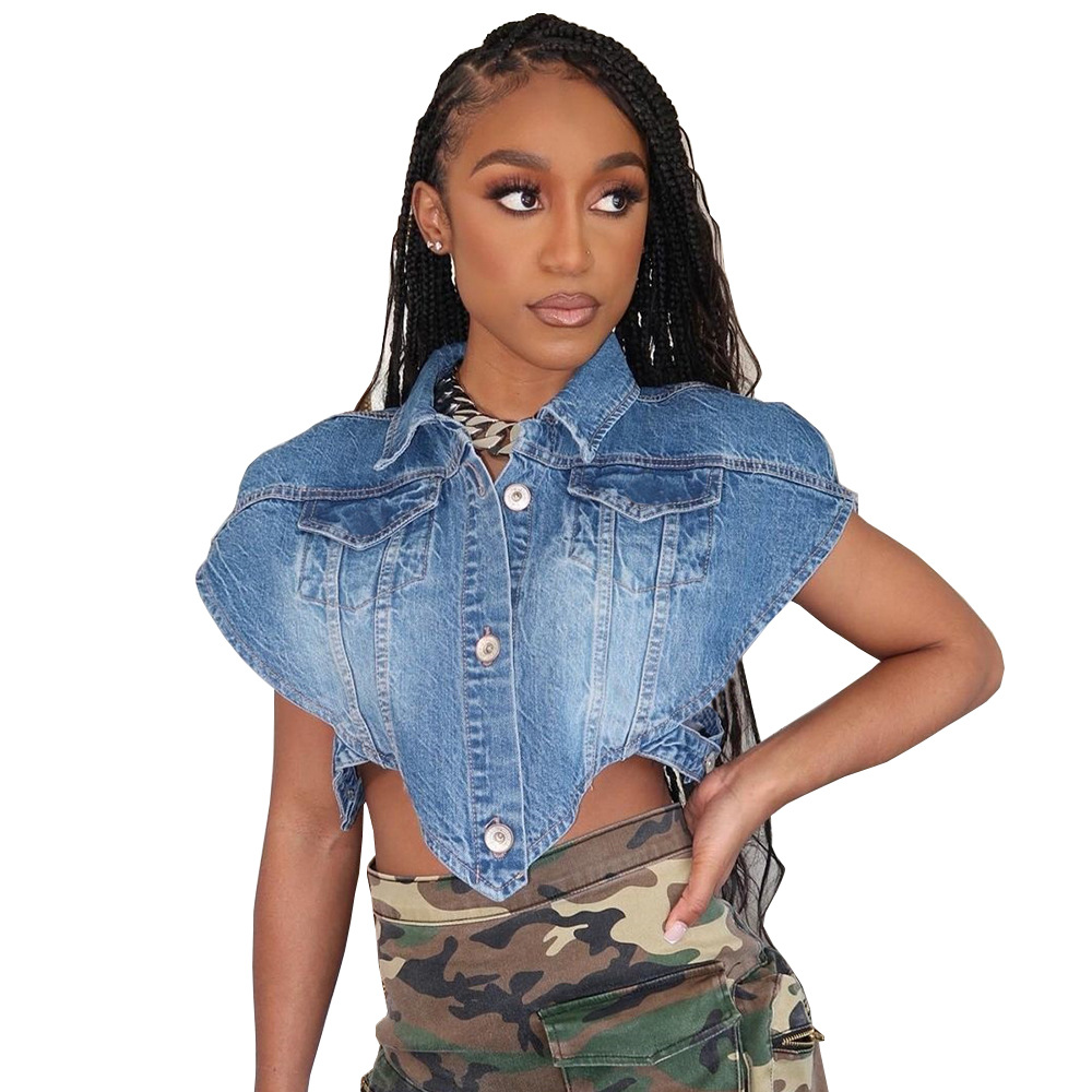 7814TG nazada pocket Denim blouse Amazon trend wash shirt collar edgy Denim jacket