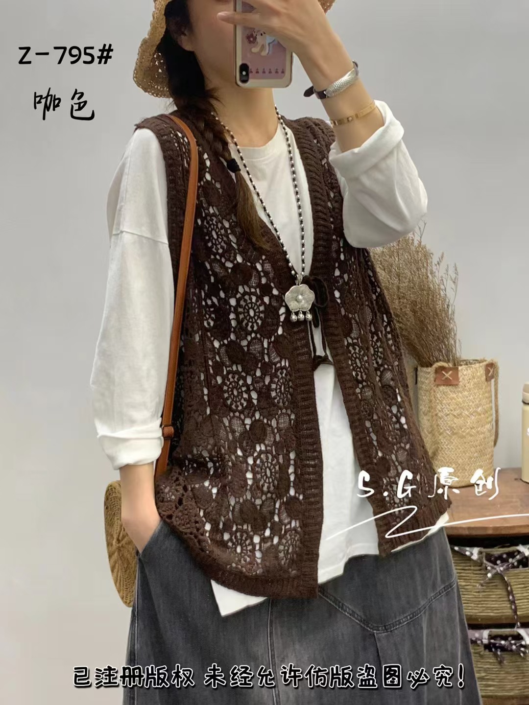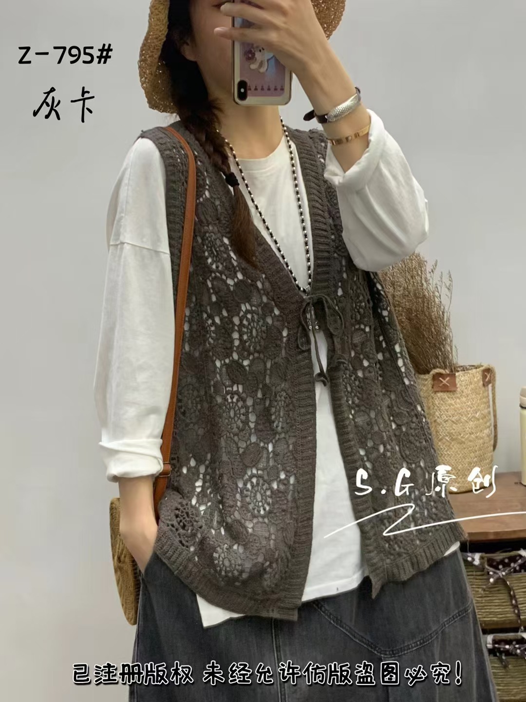 | nameOriginal | 795 Summer Cotton Crochet Hollow Shawl Vest Women's Artistic Retro Outer Sleeveless Cardigan Top Coat |
