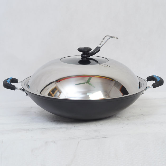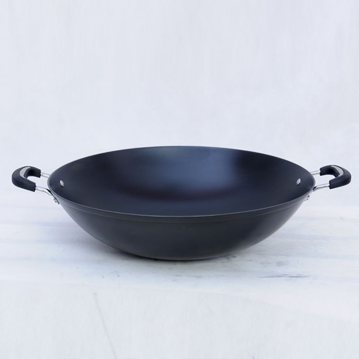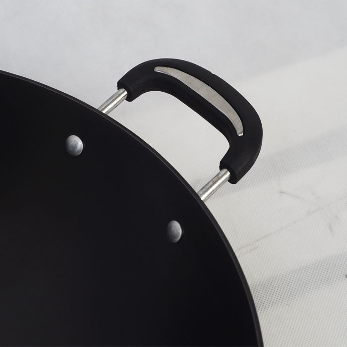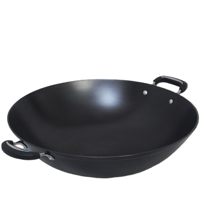 7bd cast iron pig iron non-stick pan rust-free uncoated thickened round pointed bottom household gas double-ear large frying pan