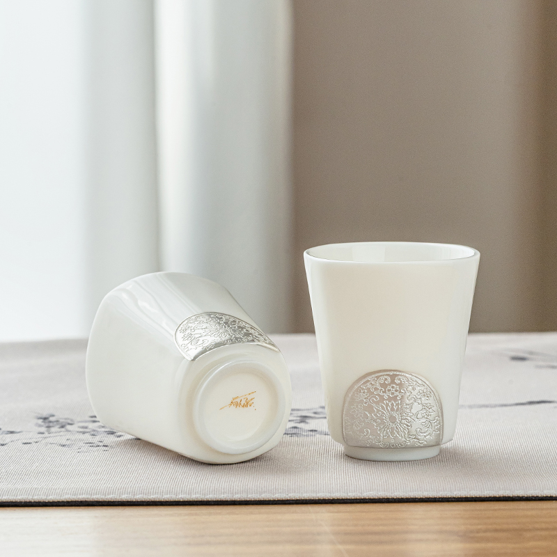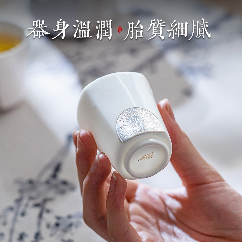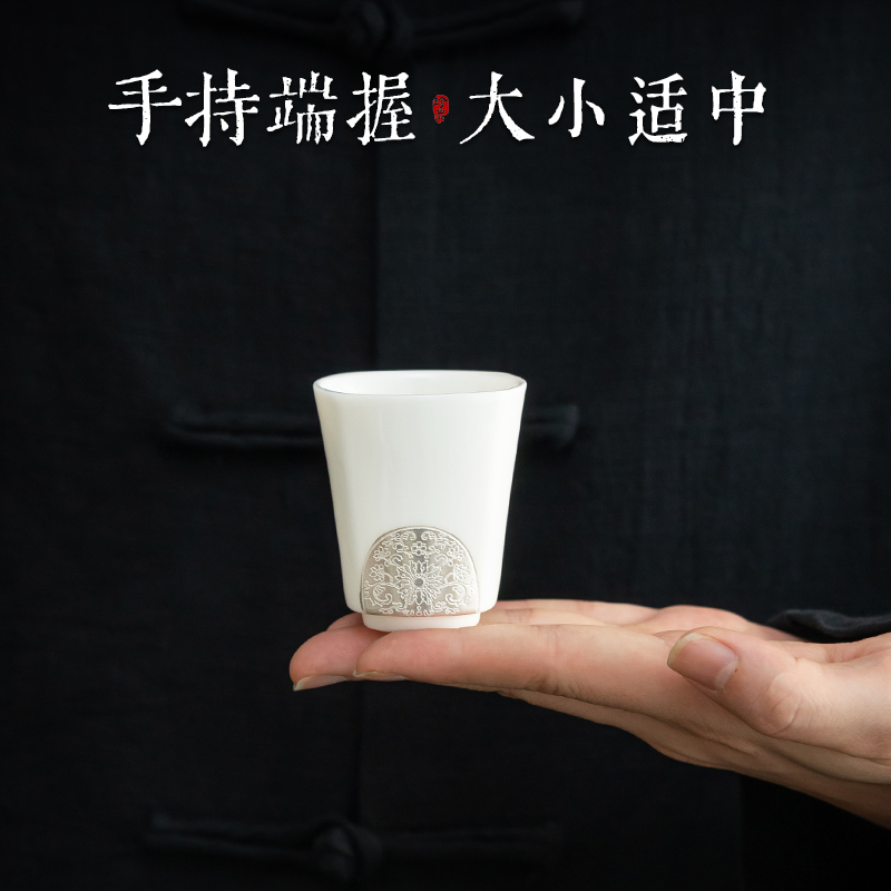 7H Silver White Porcelain Tea Cup Home Kung Fu Tea Set Individual Single Cup Light Luxury Simple Ceramic Tea Cup for Tea Maker