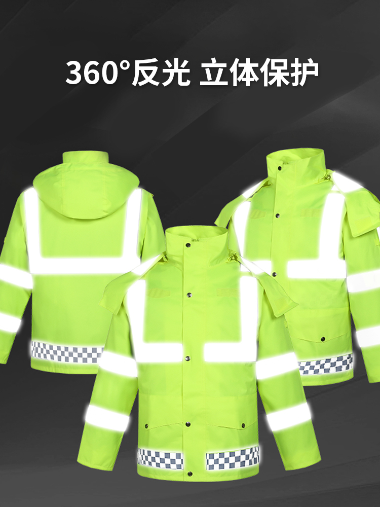 7L Reflective Raincoat suit Traffic Duty Rescue Clothing Waterproof Split Male Security Property Patrol Rainproof Clothing