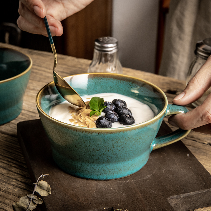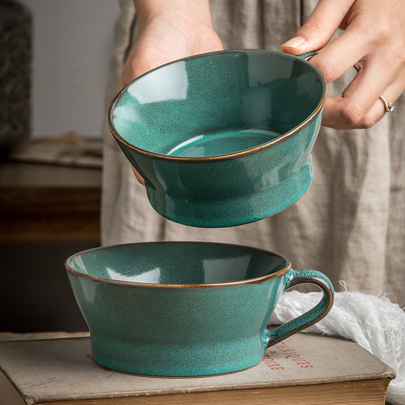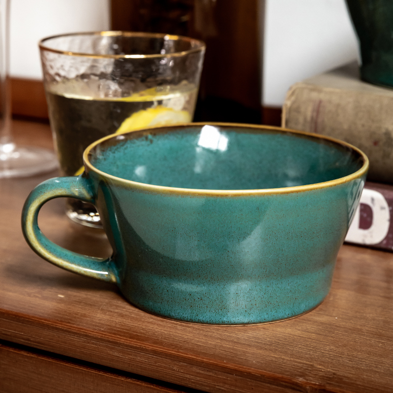 | nameOriginal | 7M alley tail [breakfast good things ~ oat cup] retro dark green cereal cup breakfast cup ceramic cup slightly defective |