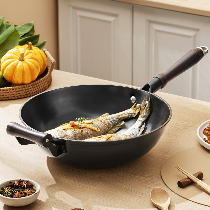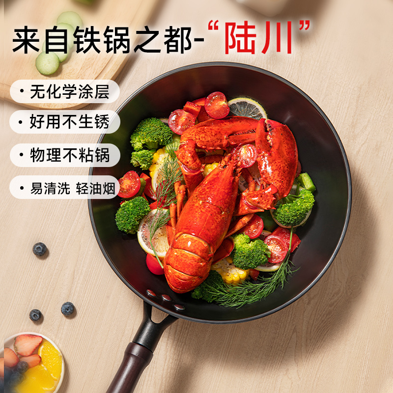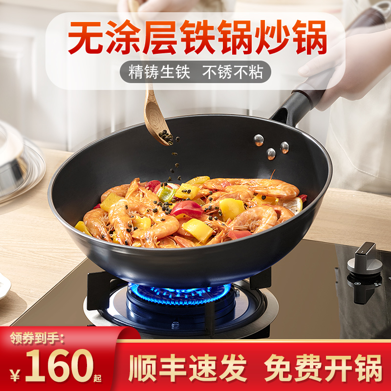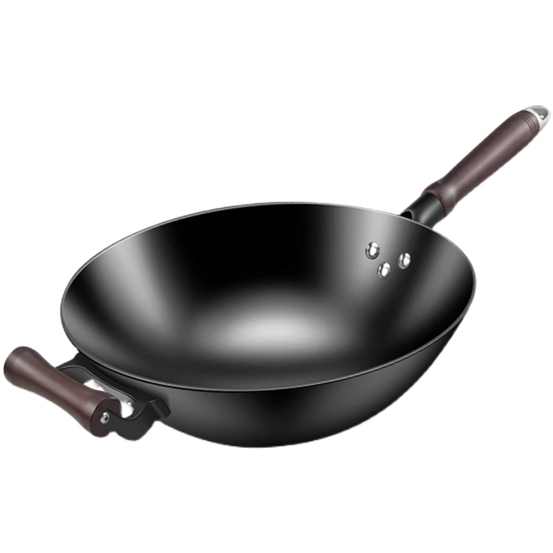 7M Iron Wok Wok Household Old-fashioned Non-coated Concave Induction Cooker Round Flat Bottom Non-stick Pan Pure Past Iron Cast Iron Fried