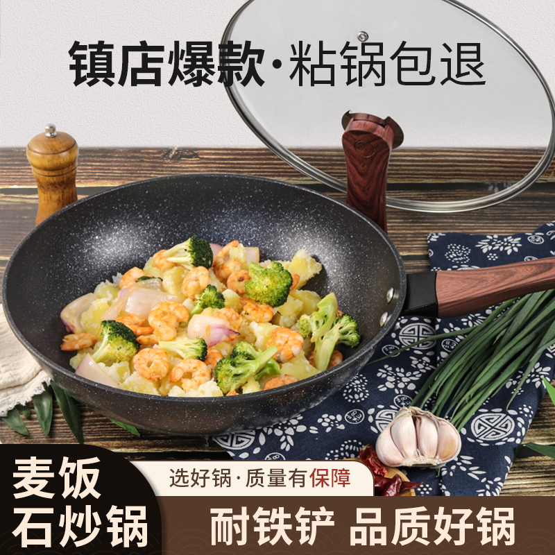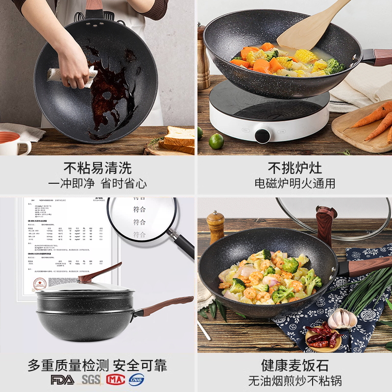 7M9K maifan Stone non-stick wok household non-stick pan induction cooker coal gas stove fried
