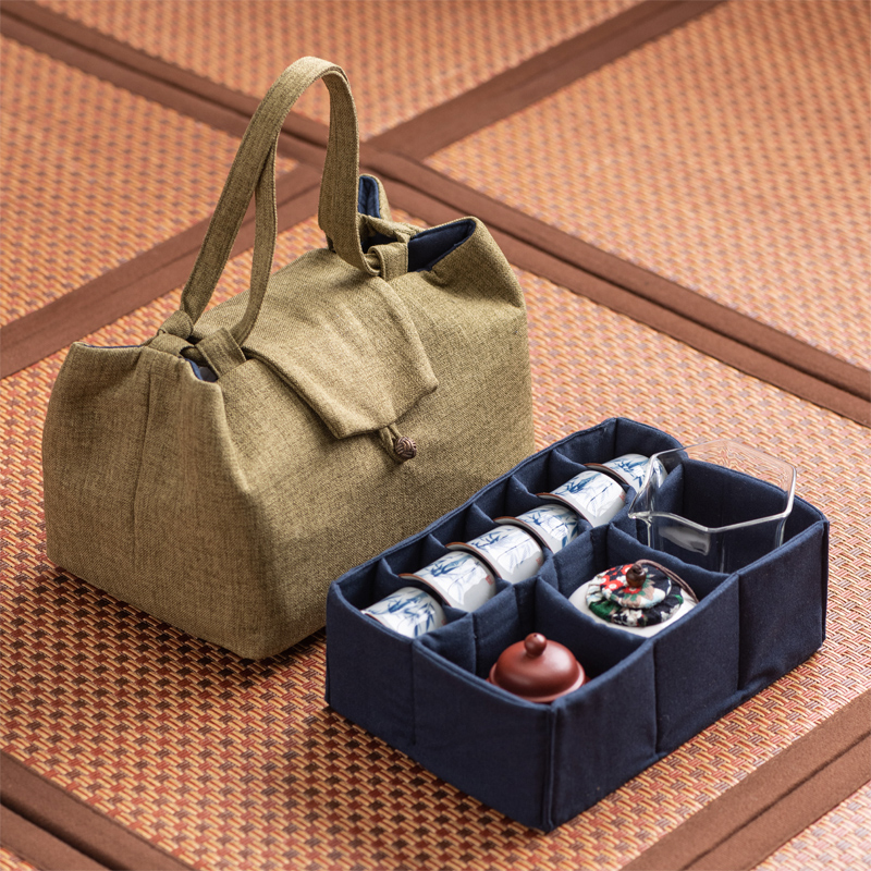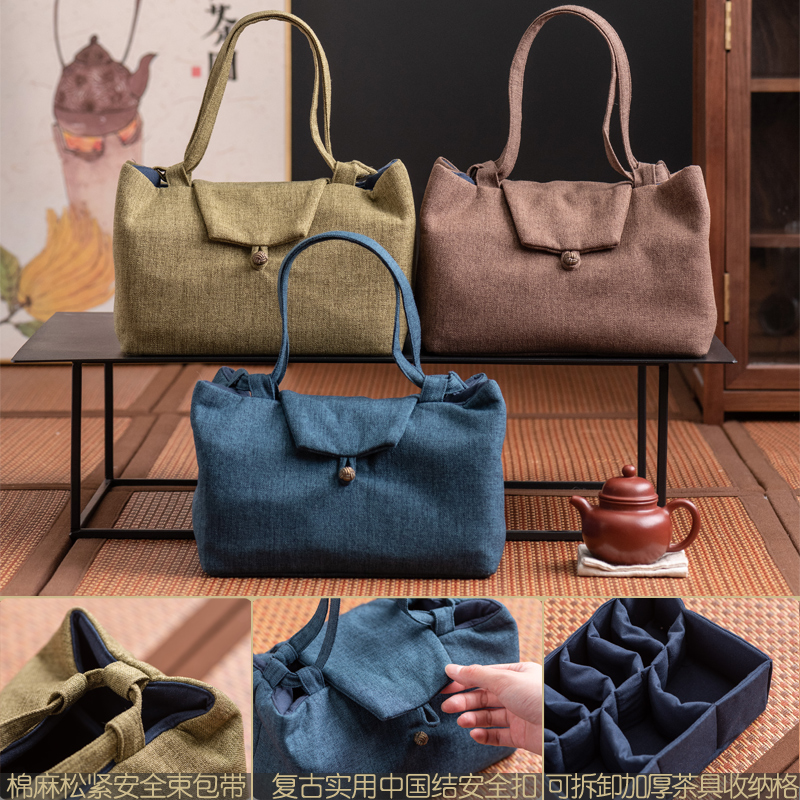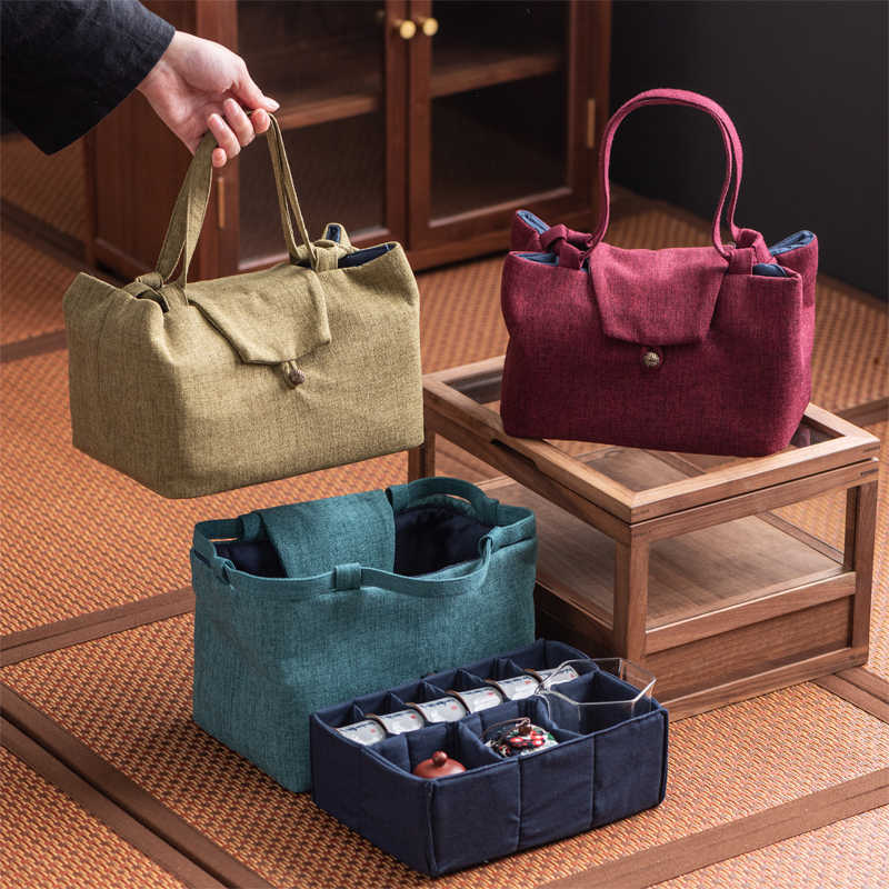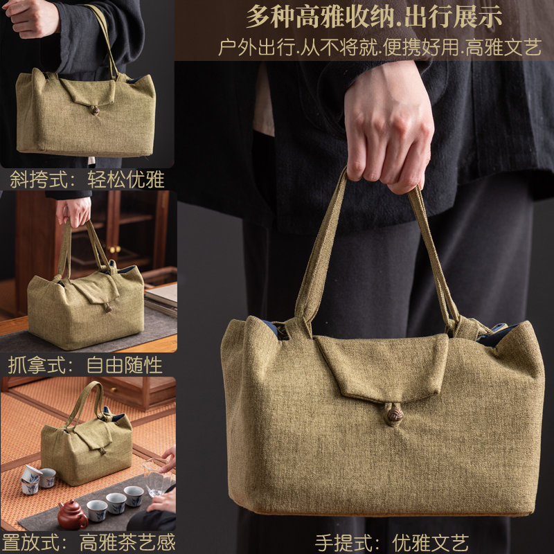 | nameOriginal | 7M9K tea set storage bag home outdoor travel tea set large capacity cotton linen fabric portable bag storage box |