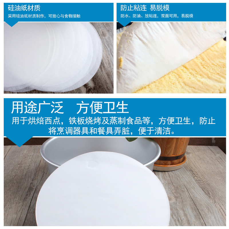 | nameOriginal | 7N6/8 inch round silicone oil paper 10 inch high temperature resistant steamed cake film pad mold release oil paper edge paper |