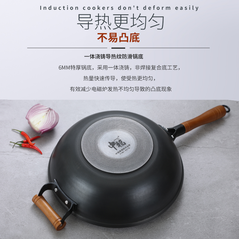 | nameOriginal | 7Q56 induction cooker iron wok frying pan nitrided cast iron cooking uncoated pig iron household gas stove Lu Chuanping |