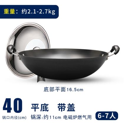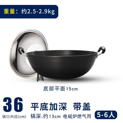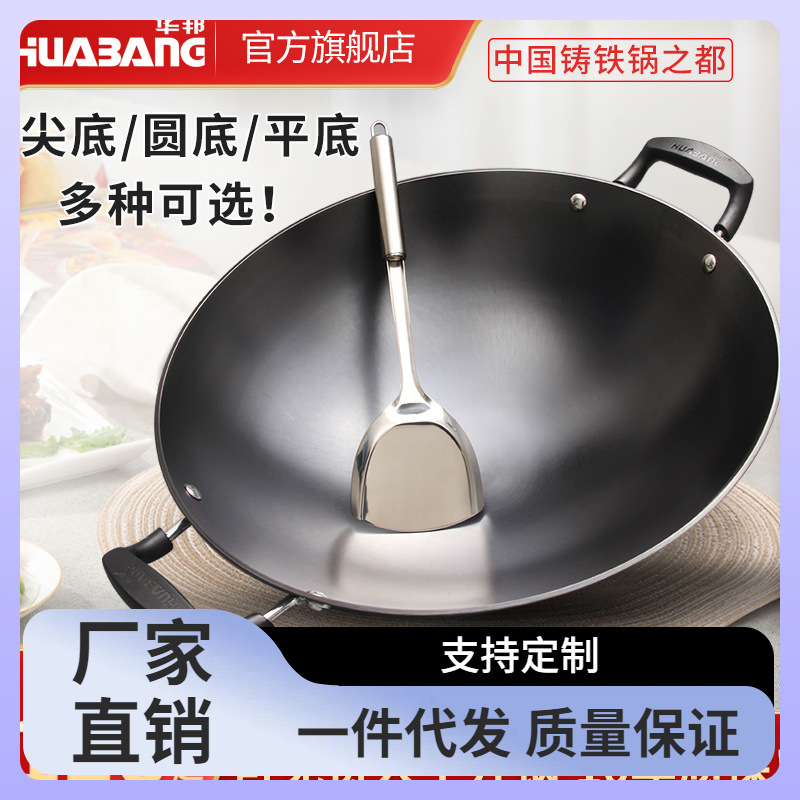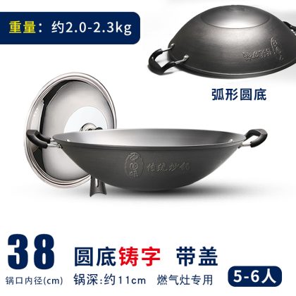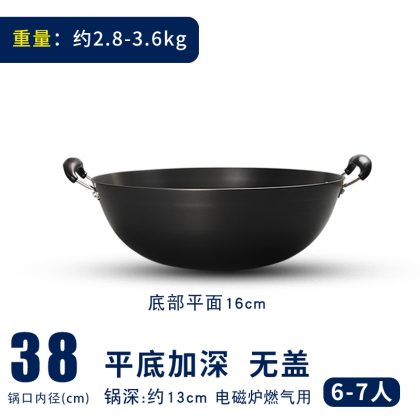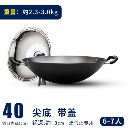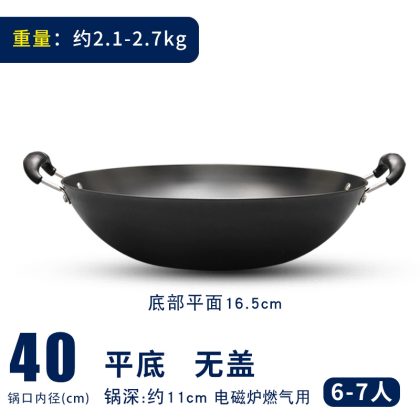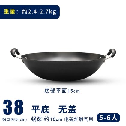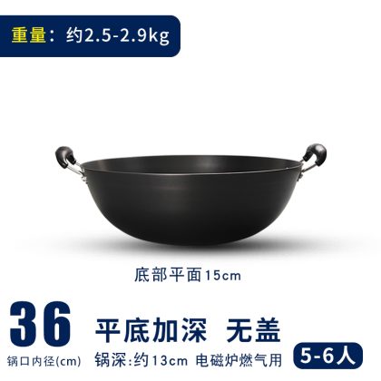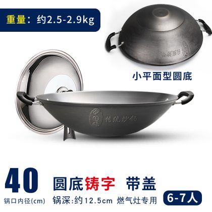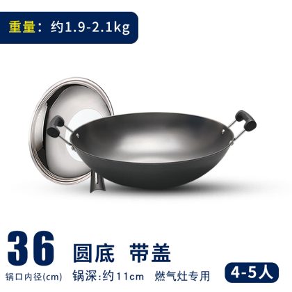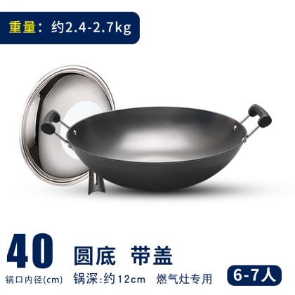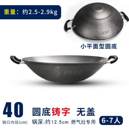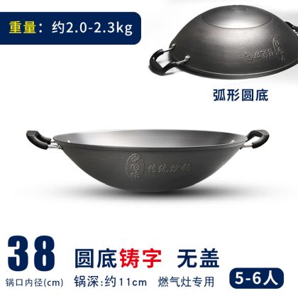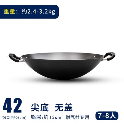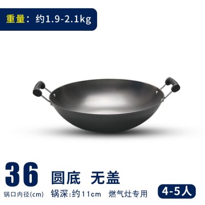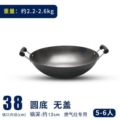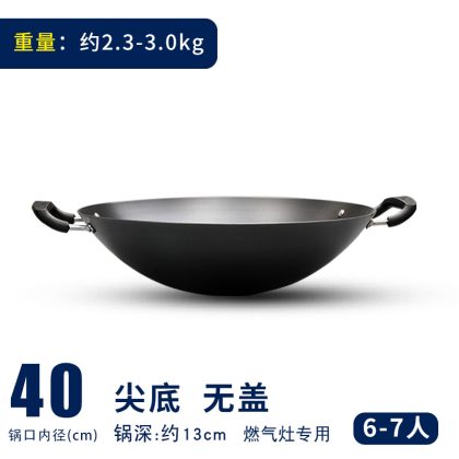 7Q56 large wok iron pan double-ear pointed bottom pan cast iron old-fashioned wok uncoated non-stick pan gas round