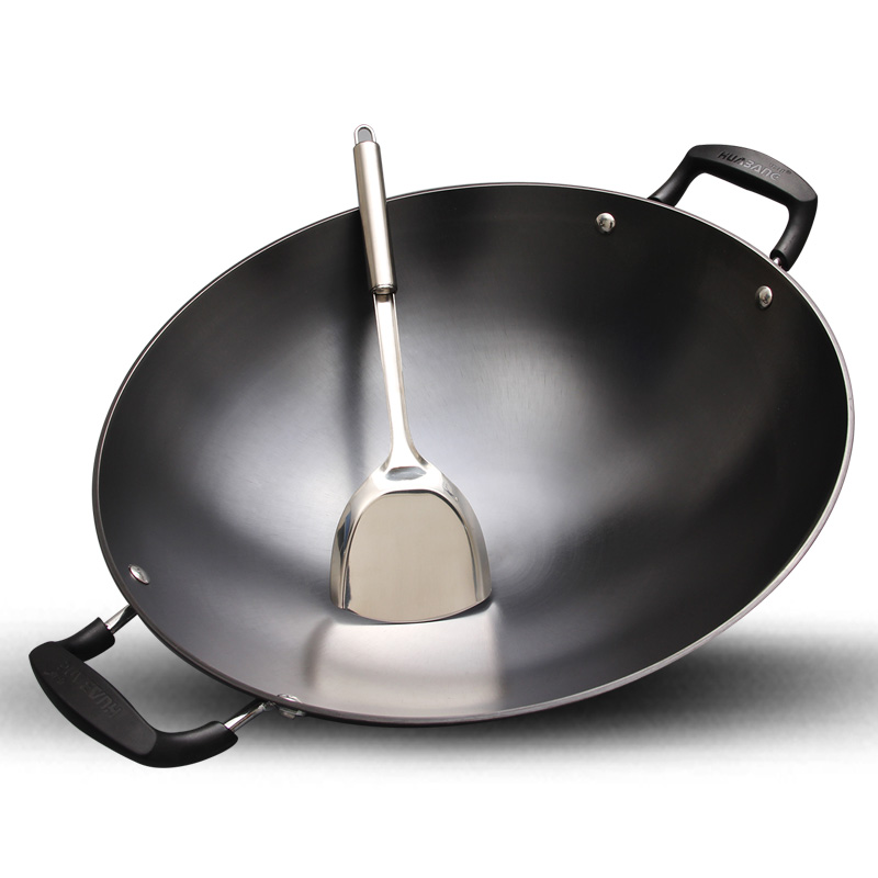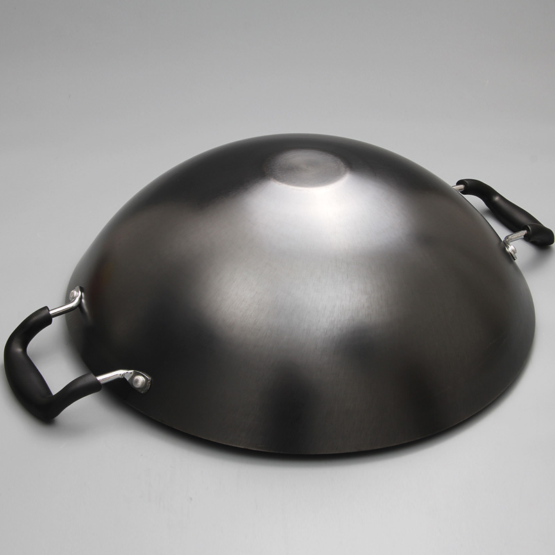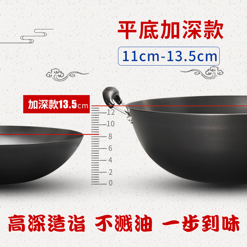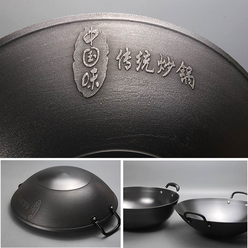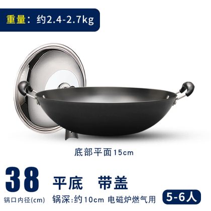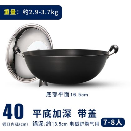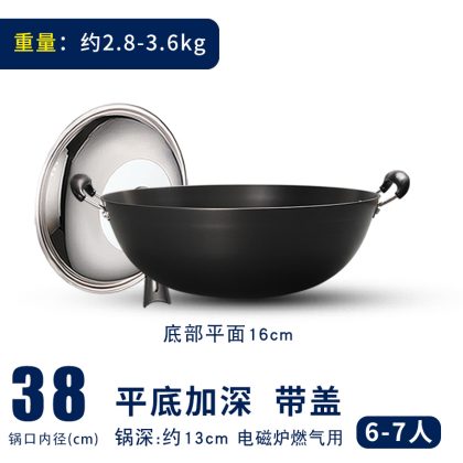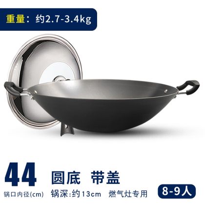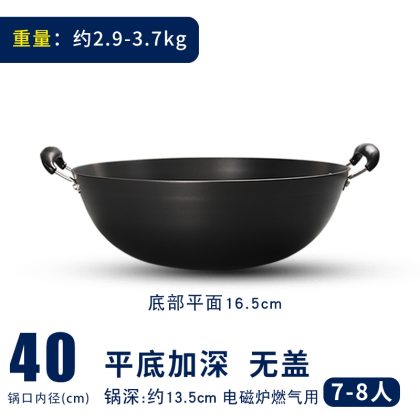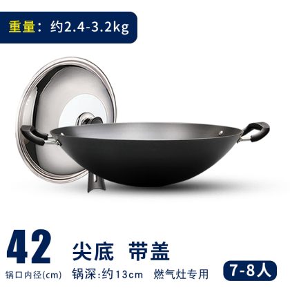 7Q56 large wok iron pan double-ear pointed bottom pan cast iron old-fashioned wok uncoated non-stick pan gas round