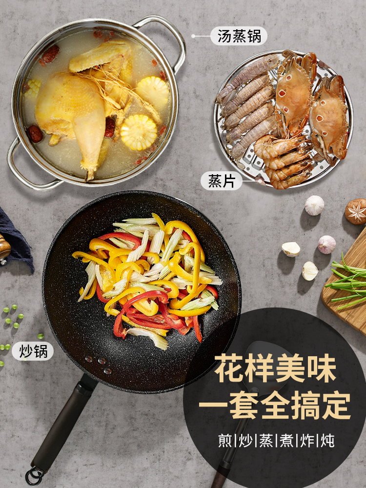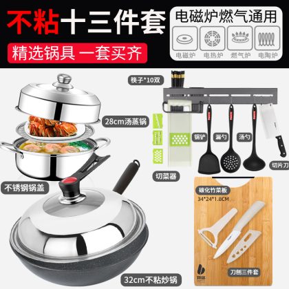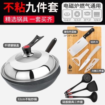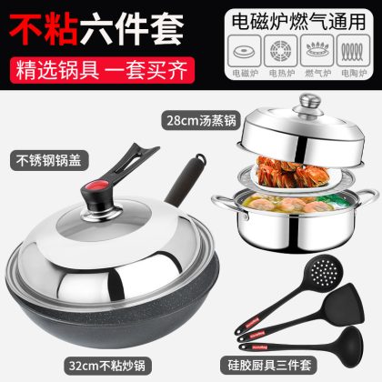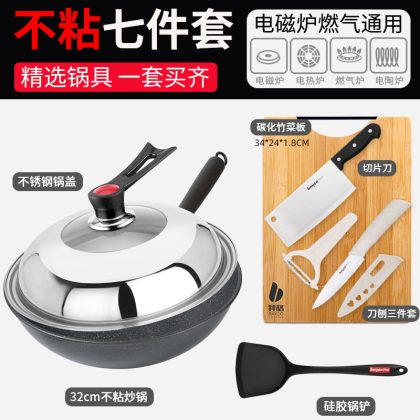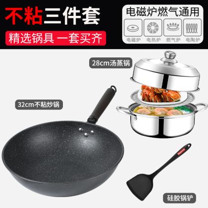 | nameOriginal | 7Q56 wok suit induction cooker three-piece set household non-stick pan full set of flat non-stick cookware suit |