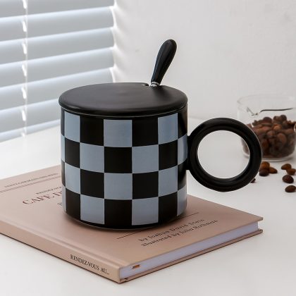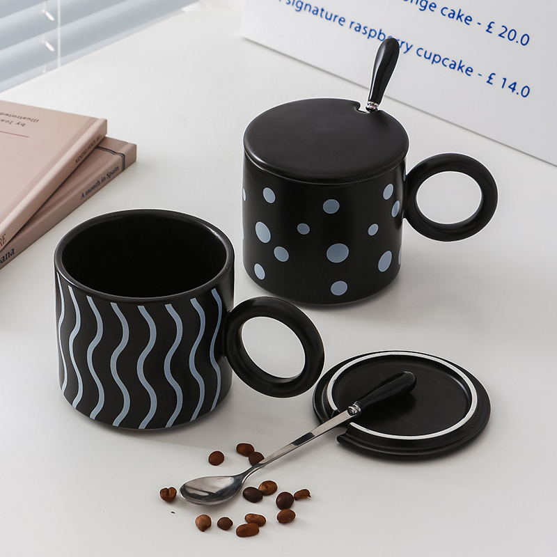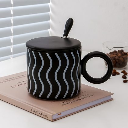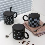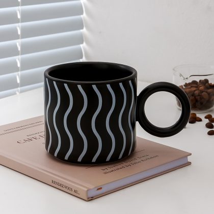 7VHV European Style Simple Ins Personalized Ceramic Coffee Mug Men’s and Women’s Office Home Tea Breakfast Cup Belt