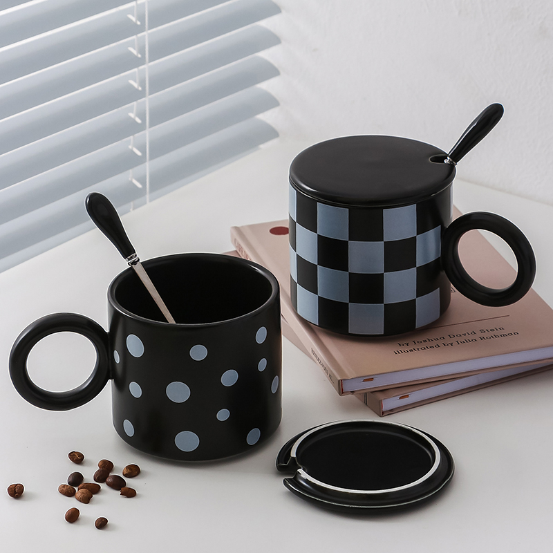 7VHV European Style Simple Ins Personalized Ceramic Coffee Mug Men's and Women's Office Home Tea Breakfast Cup Belt