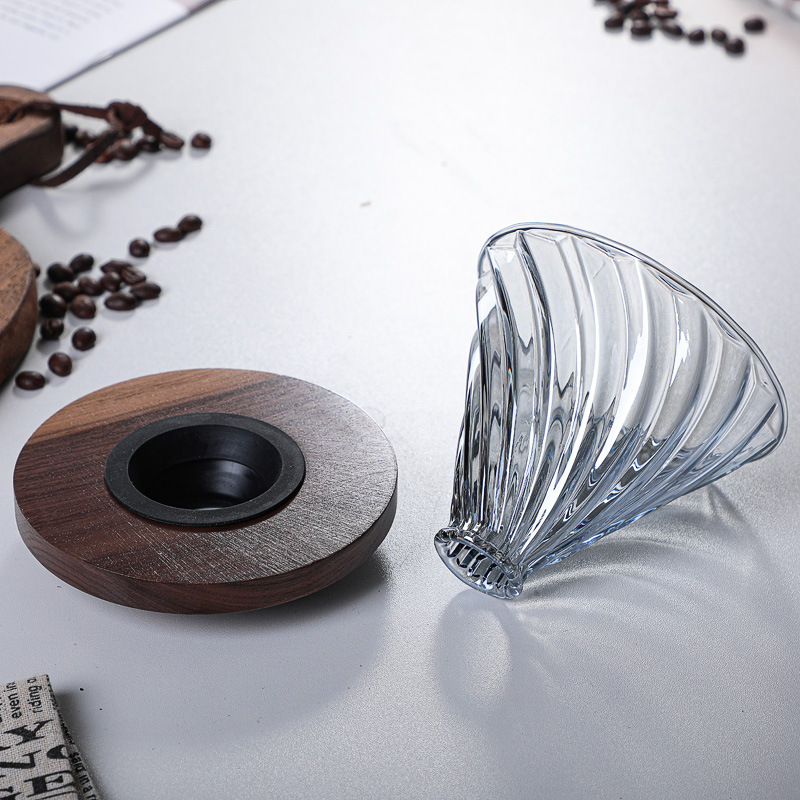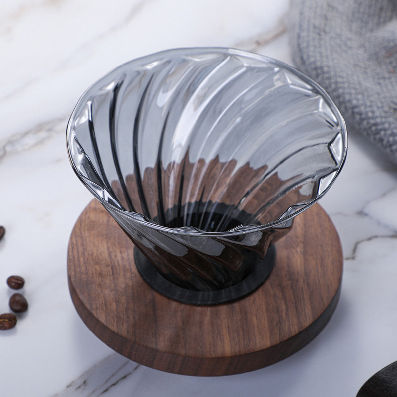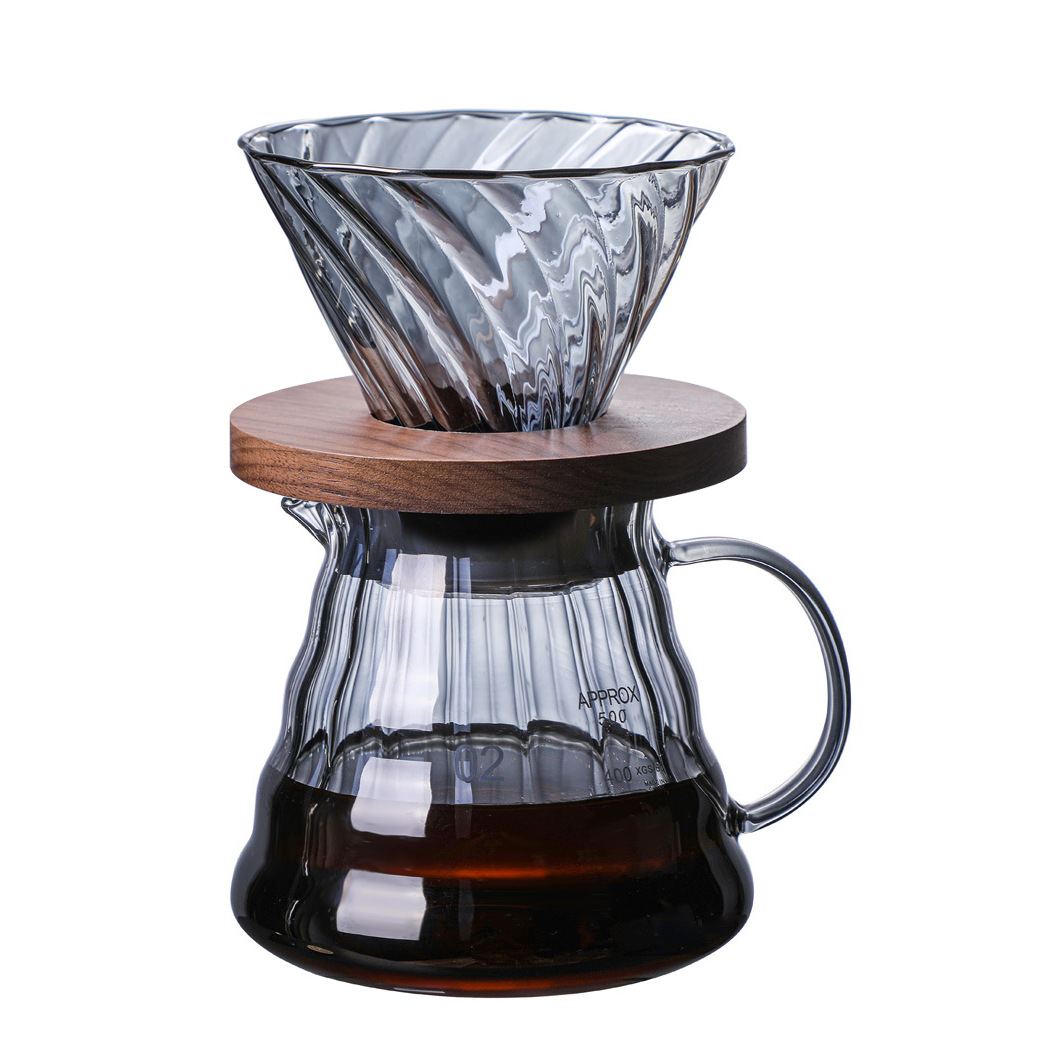 | nameOriginal | 7VHV hand coffee gray glass V60 conical filter cup walnut holder high temperature resistant sharing coffee pot set |