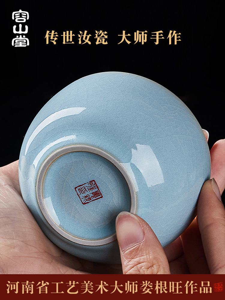 7VHV Lou genwang master Tianqing Ruzhou Ru kiln master Cup single cup tea cup Jianzhan Ru porcelain open tea cup