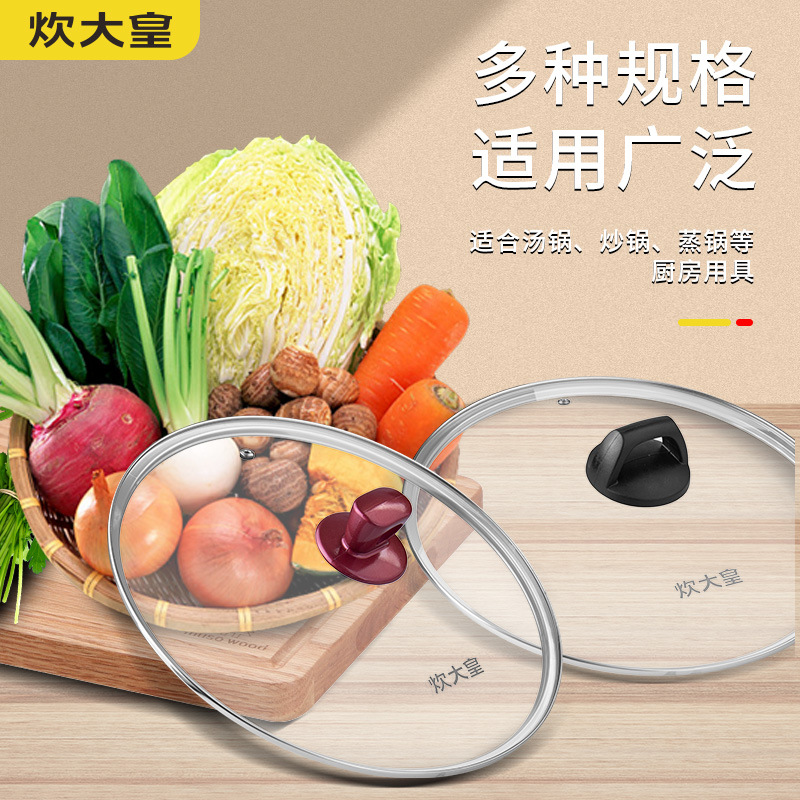 7VHV pot cover household pot cover glass pot cover high temperature resistant glass cover round wok cover universal