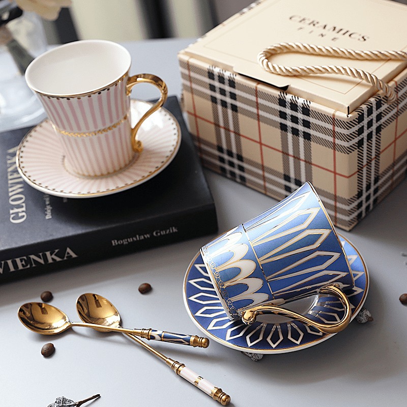 7WLO British coffee cup, saucer and spoon ins style European style small luxury ceramic afternoon tea cup tea set suit gift