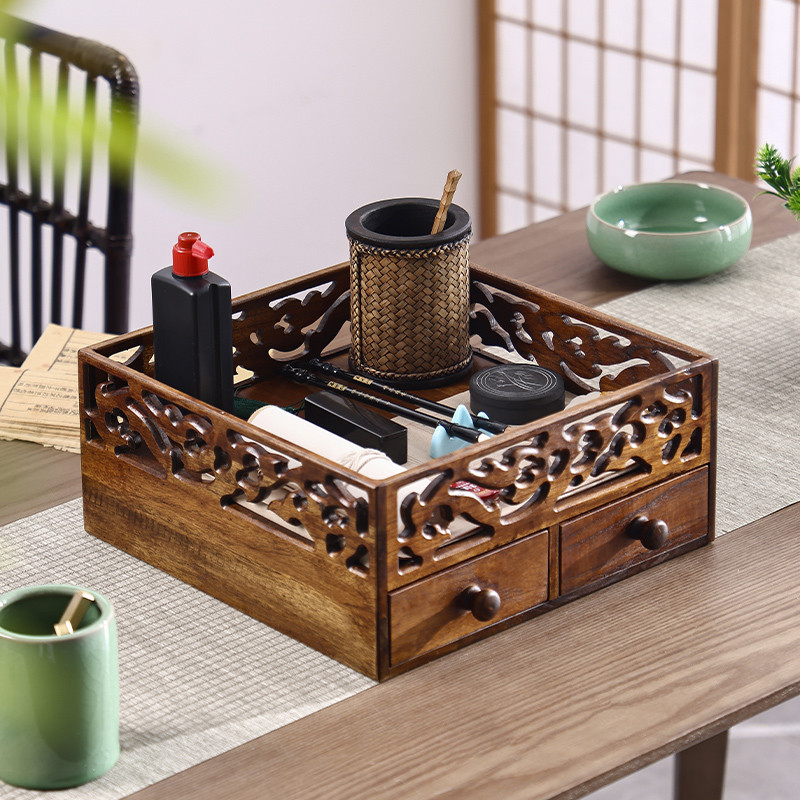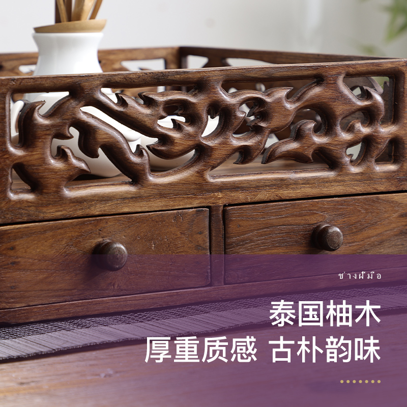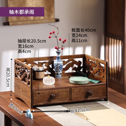 7WLO Solid Wood Tea Cup Rack Table Chinese Tea Set Storage Rack Tea Table Tea Tray Storage Box