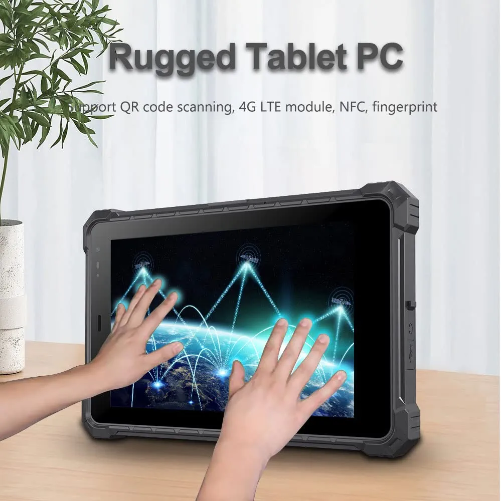 8″ Android 10 Rugged Tablet with 4GB RAM, 64GB storage, and 10000mAh battery. Features WiFi, GPS, NFC, 4G LTE, and IP68 waterproof rating.