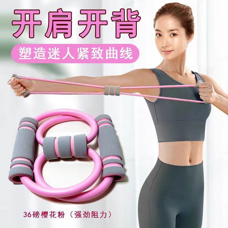 8-character tensile device women's home fitness elastic belt yoga material shoulder abdominal muscle training rope stretching exercise fat open back pull back cross-border