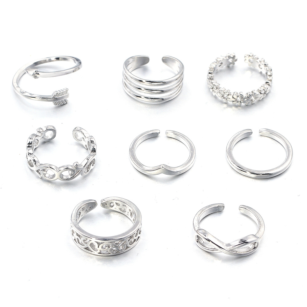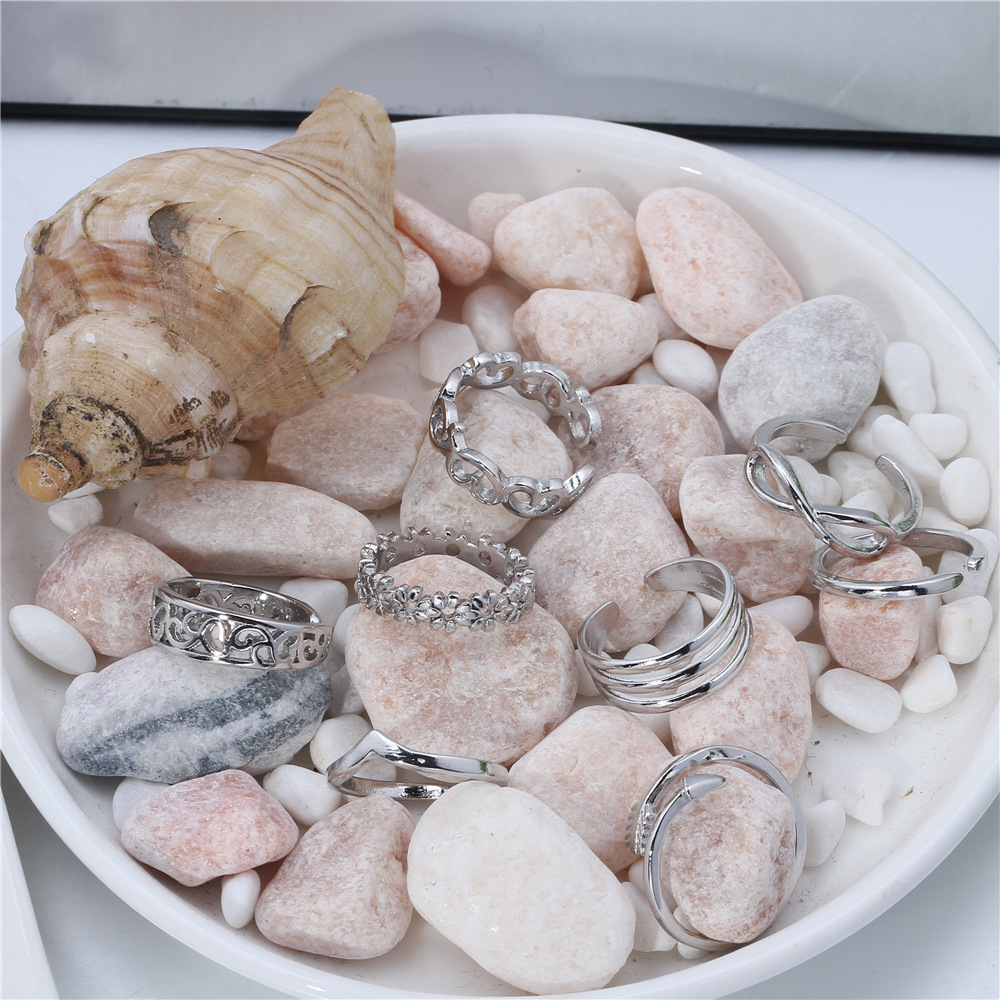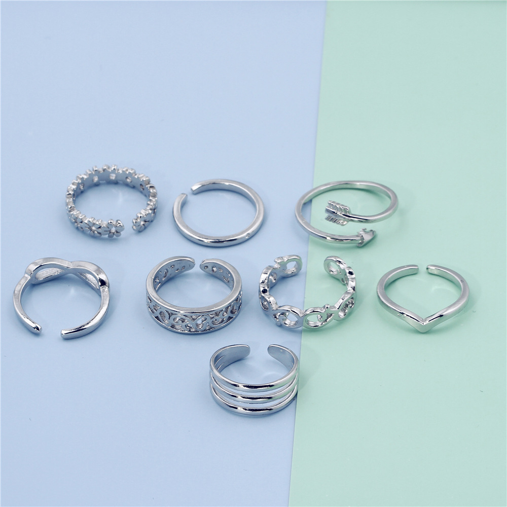 8 European and American Women Summer Holiday Beach Foot Ring Tail Ring Opening Adjustable Ring Color Preservation Plating Cross-Border