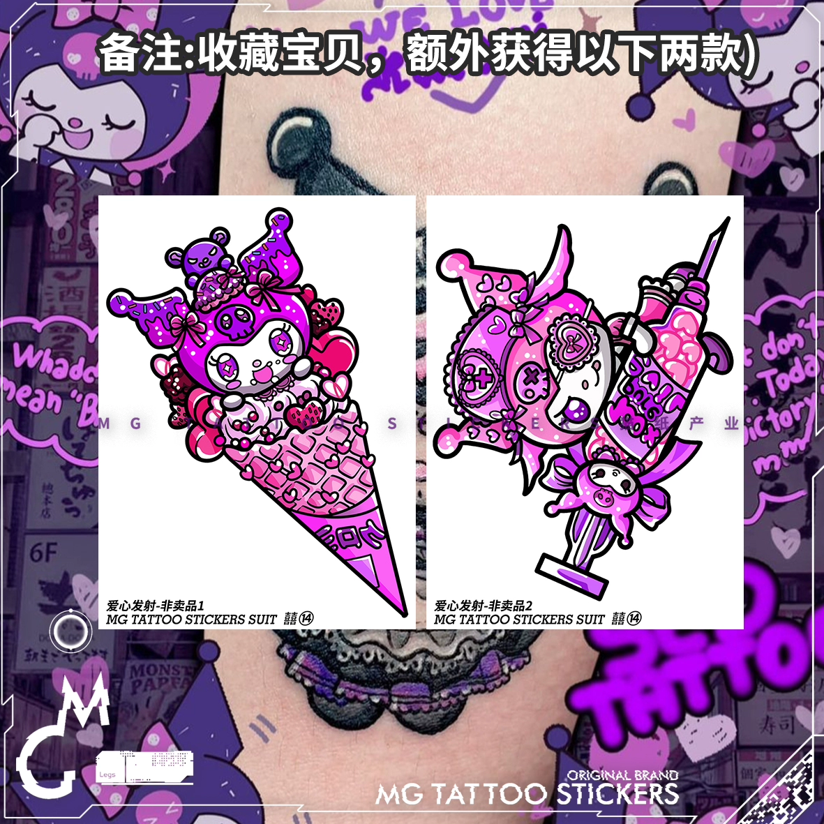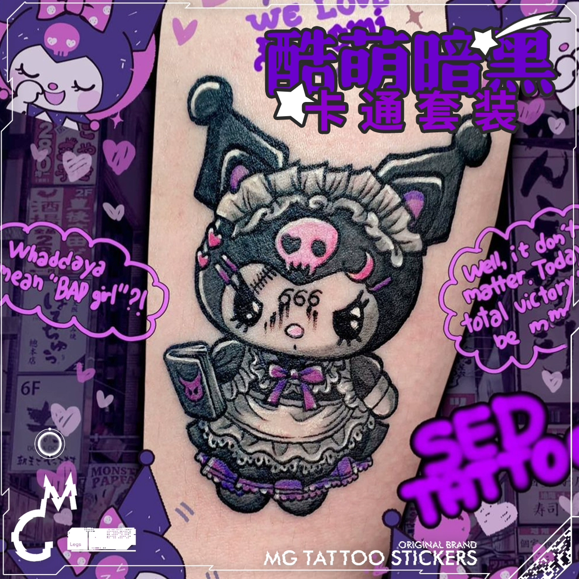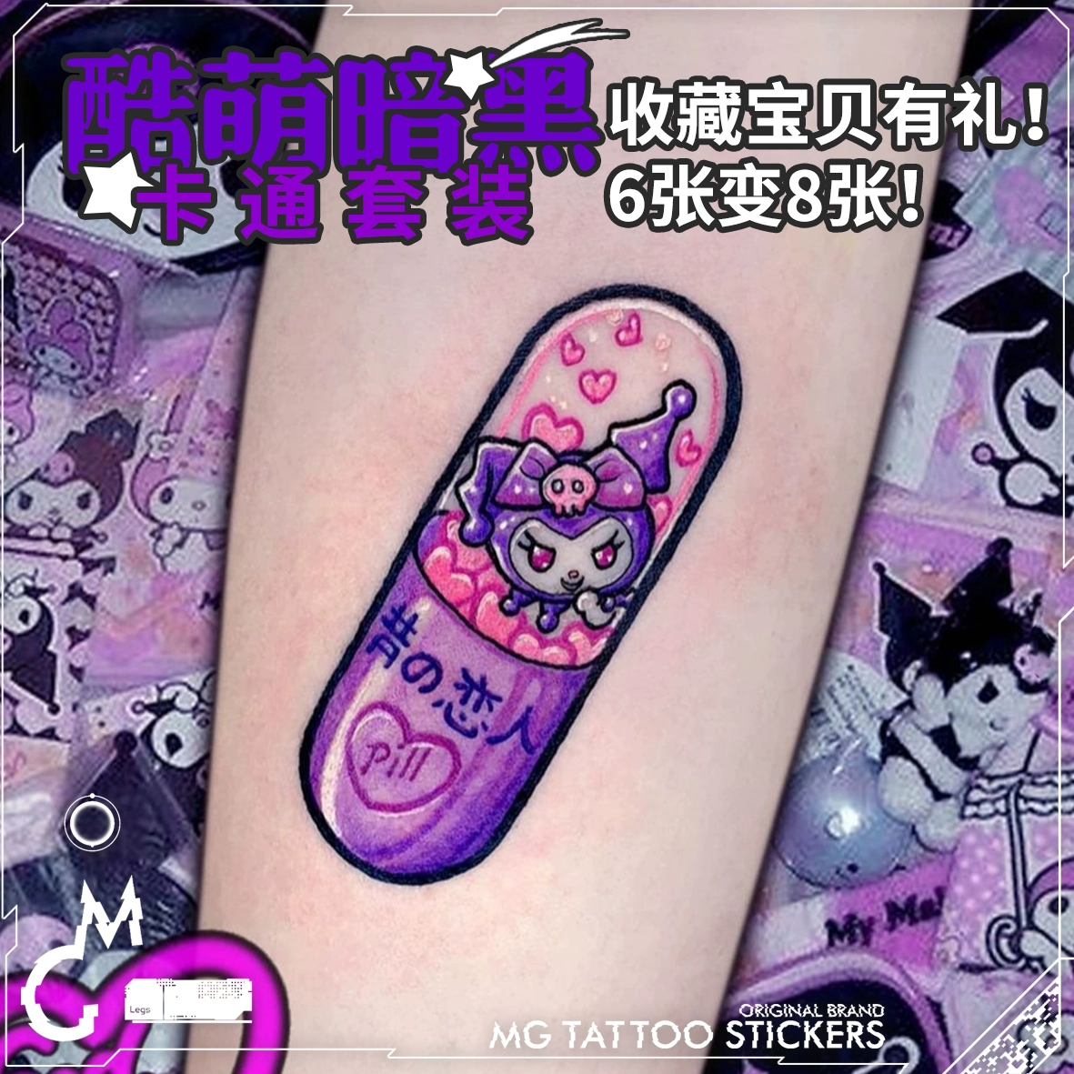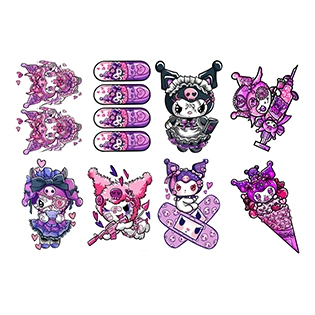 | nameOriginal | 8 free shipping ins style Kuromi Melody cartoon dark color tattoo stickers cute flower arm set waterproof |