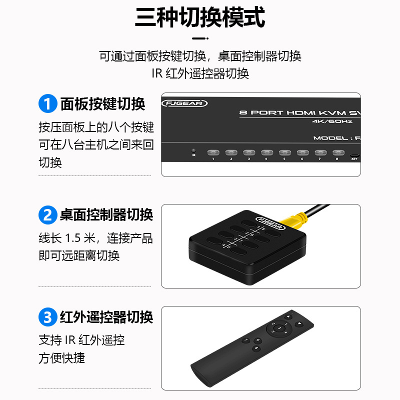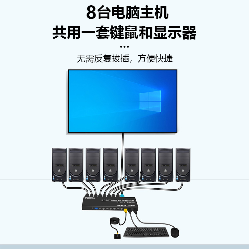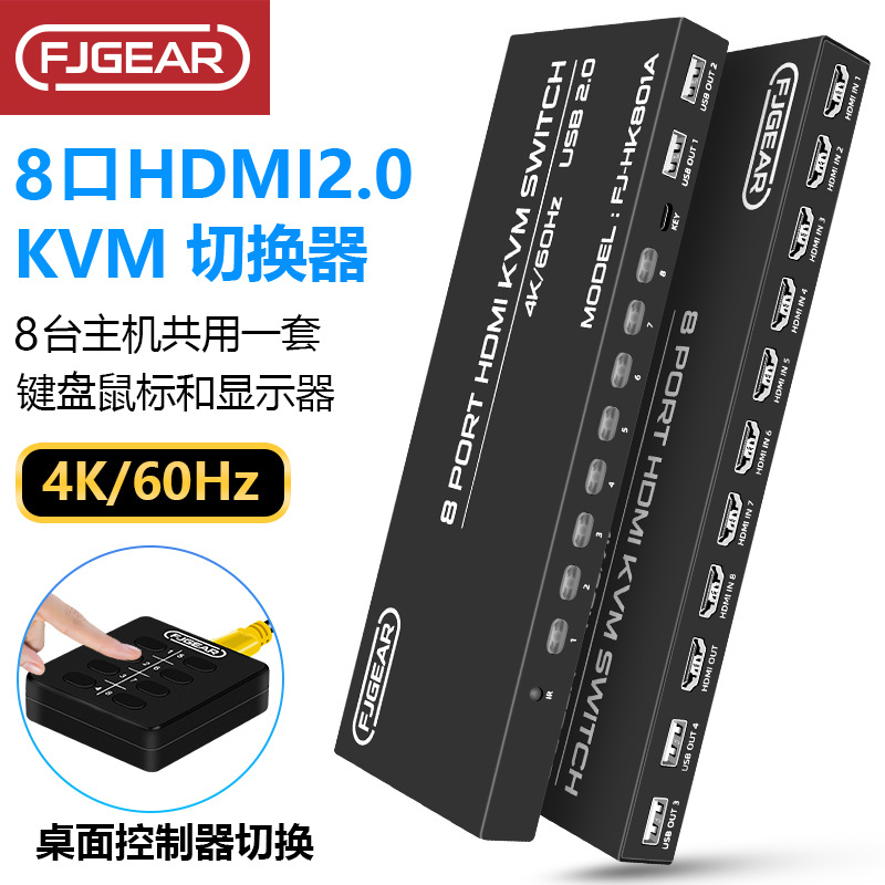 | nameOriginal | 8 in 1 out 4K HD video 8 USB keyboard and mouse sharer 4K 2.0 HDMI KVM switch |
