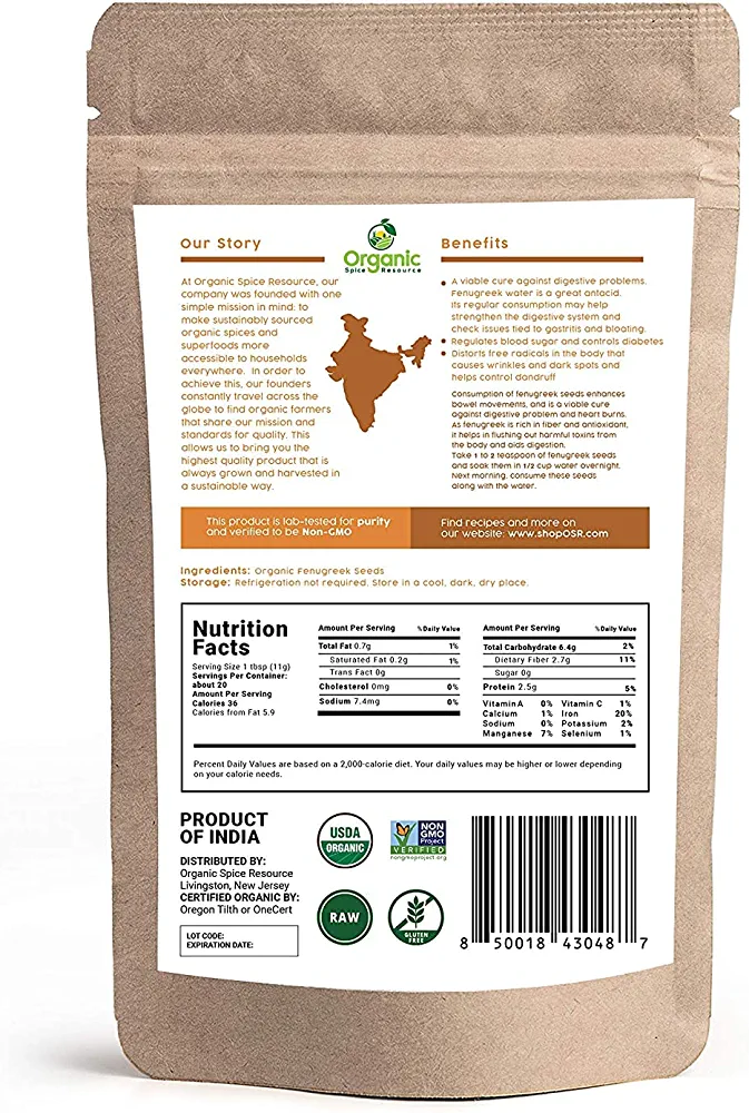 Introducing our premium quality Organic Fenugreek Seeds, sourced directly from India. Our fenugreek seeds are 100% raw and have been lab tested for purity, ensuring that you receive only the highest quality product. Our resealable Kraft bag ensures that your fenugreek seeds stay fresh and flavorful for longer.