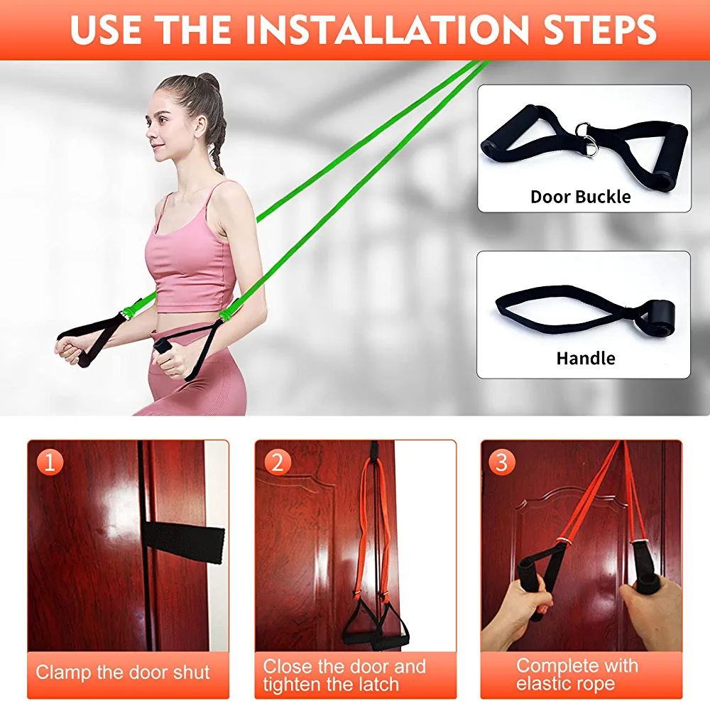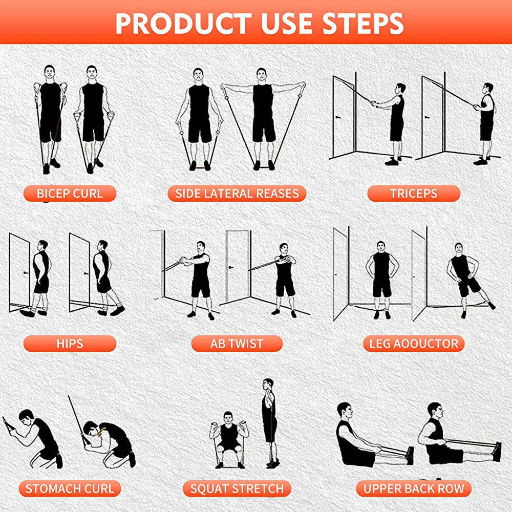Our resistance bands come with an excellent design that includes a door anchor, two handles, two steel hooks, and a carry bag for convenient storage and transport. You can take them anywhere, whether at home, office, or traveling. With our resistance bands, you can achieve your fitness goals anytime, anywhere.