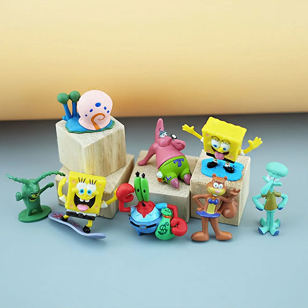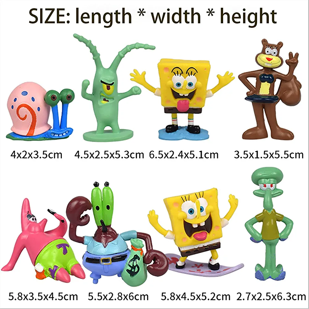 SKEIDO 8pcs/Set SpongeBob and Sent Great Stars Squidward Tentacles Fish Tank Action Figure Toys