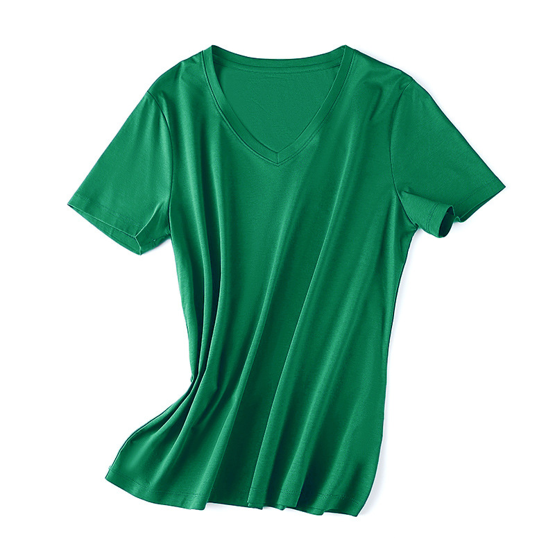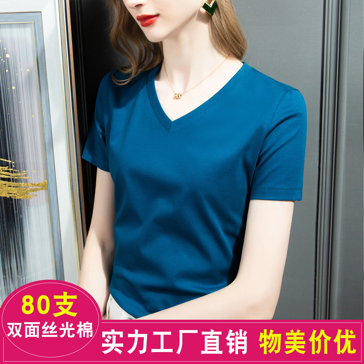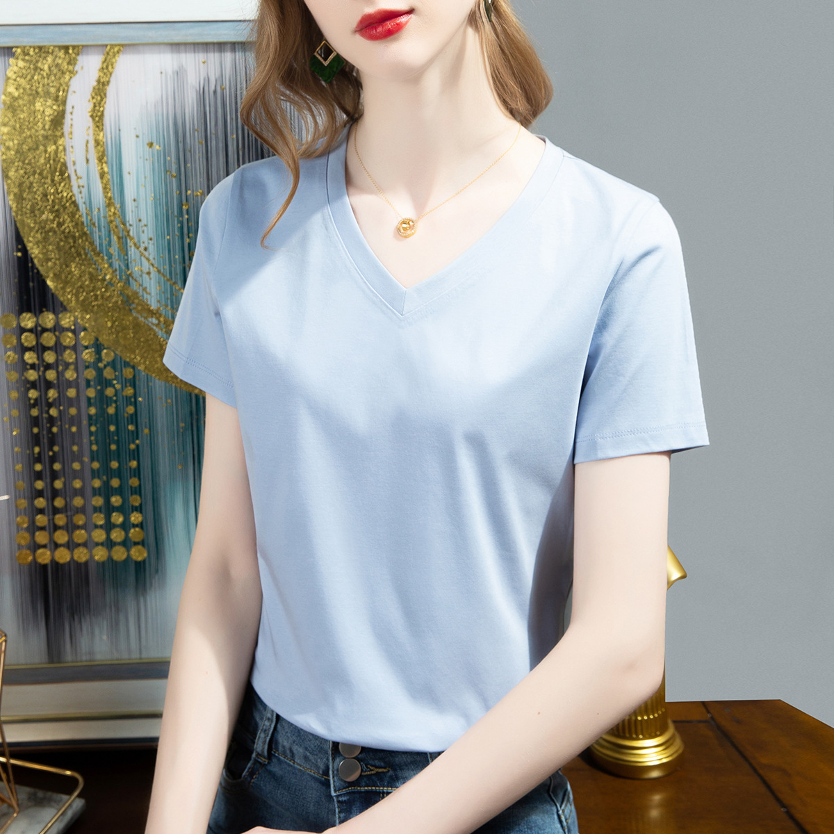 80 double-sided mercerized cotton short sleeve white T-shirt women’s spring women’s loose V-neck cotton 1688 solid color half sleeve t-shirt