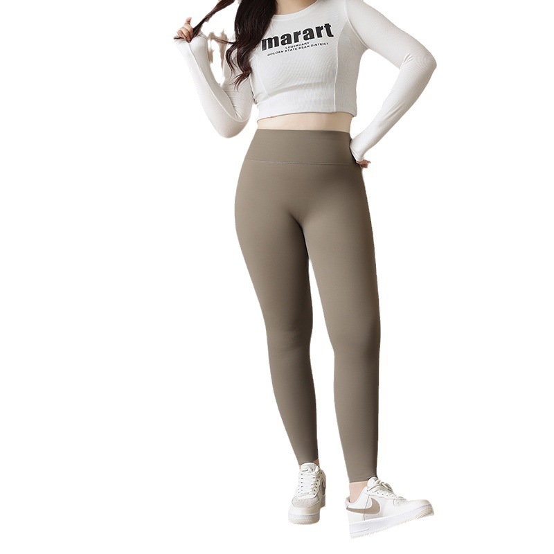 | nameOriginal | 80898# Autumn New Product no embarrassment line outer wear high waist belly contracting hip lifting inner brushed hot coffee pants for women plus size |