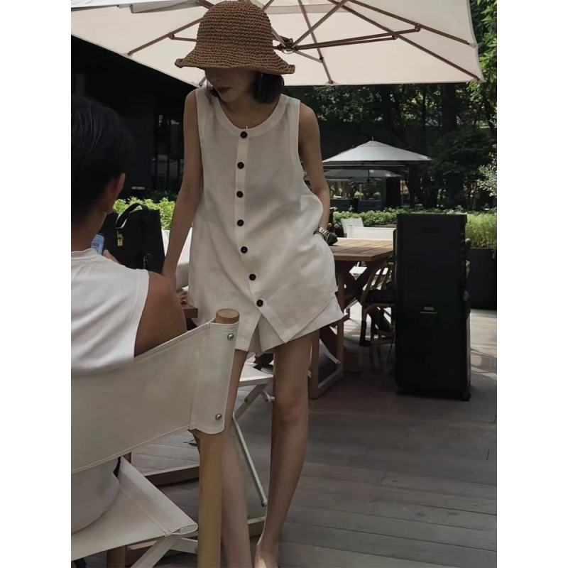 | nameOriginal | 8096 Casual Suit Women's New Summer Sleeveless Cotton and Linen Top Vest Loose Wide-leg Shorts Two-piece Set |