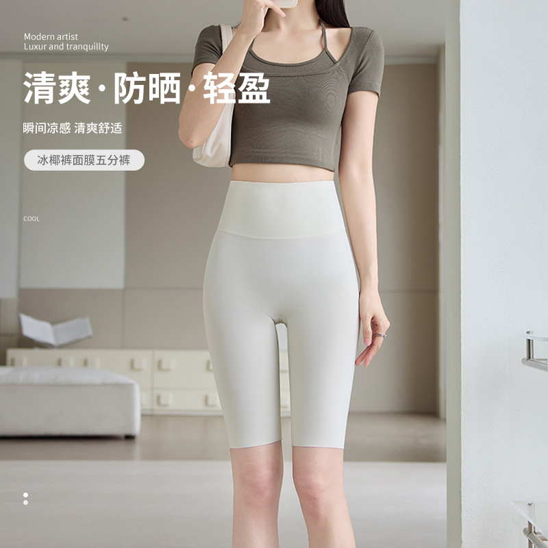 | nameOriginal | 81075# Summer New High Elastic Slimming Cool Factor Fabric Lightweight Sun Protection Ice Coconut Mask Five Pants for Women |