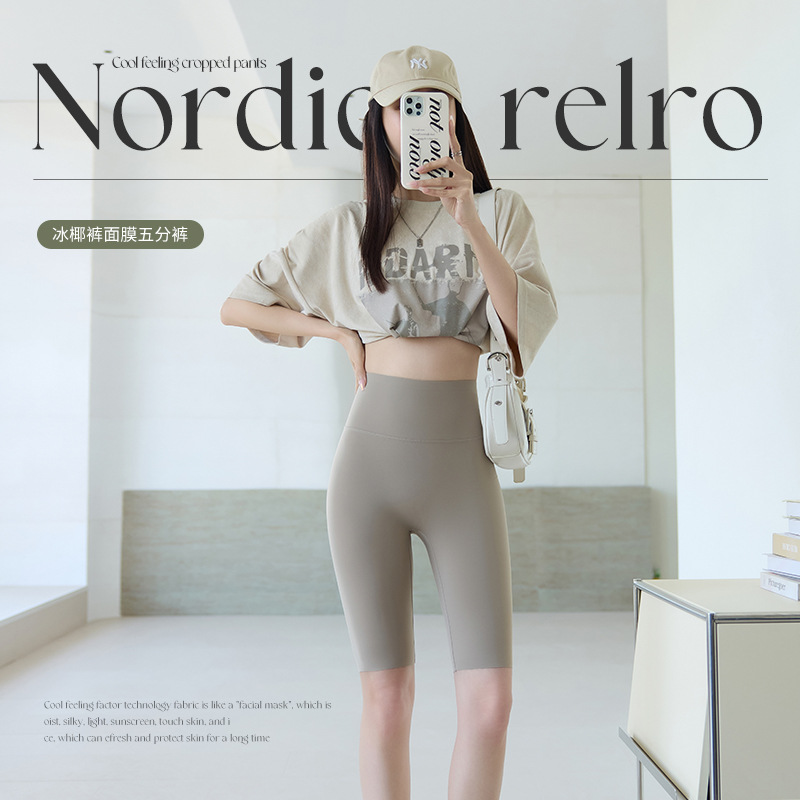 81077# Summer New High Waist Belly Ice Coconut Mask Pants TNNTHOME High Light Sunscreen Pants Women