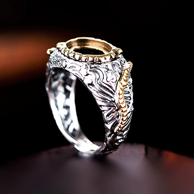 8*11 inlaid emerald gemstone retro men’s ring with empty holder