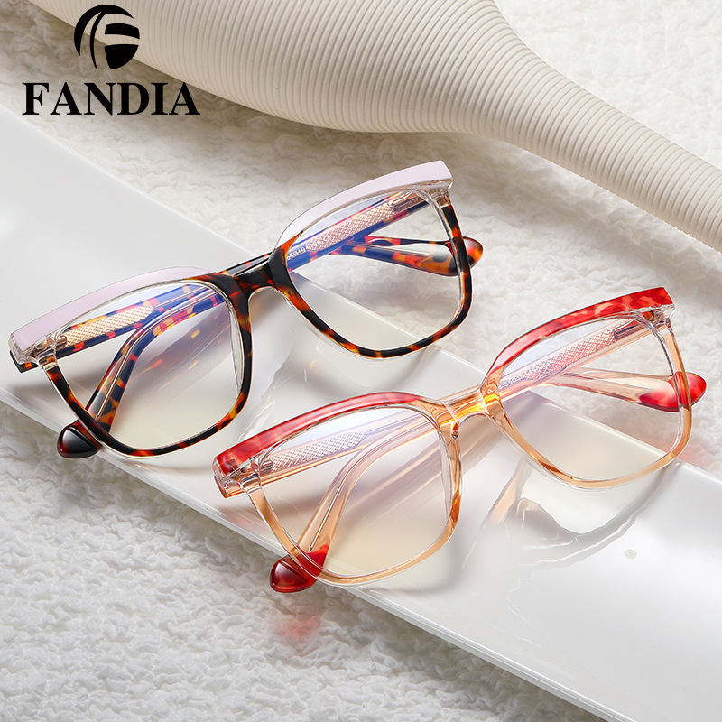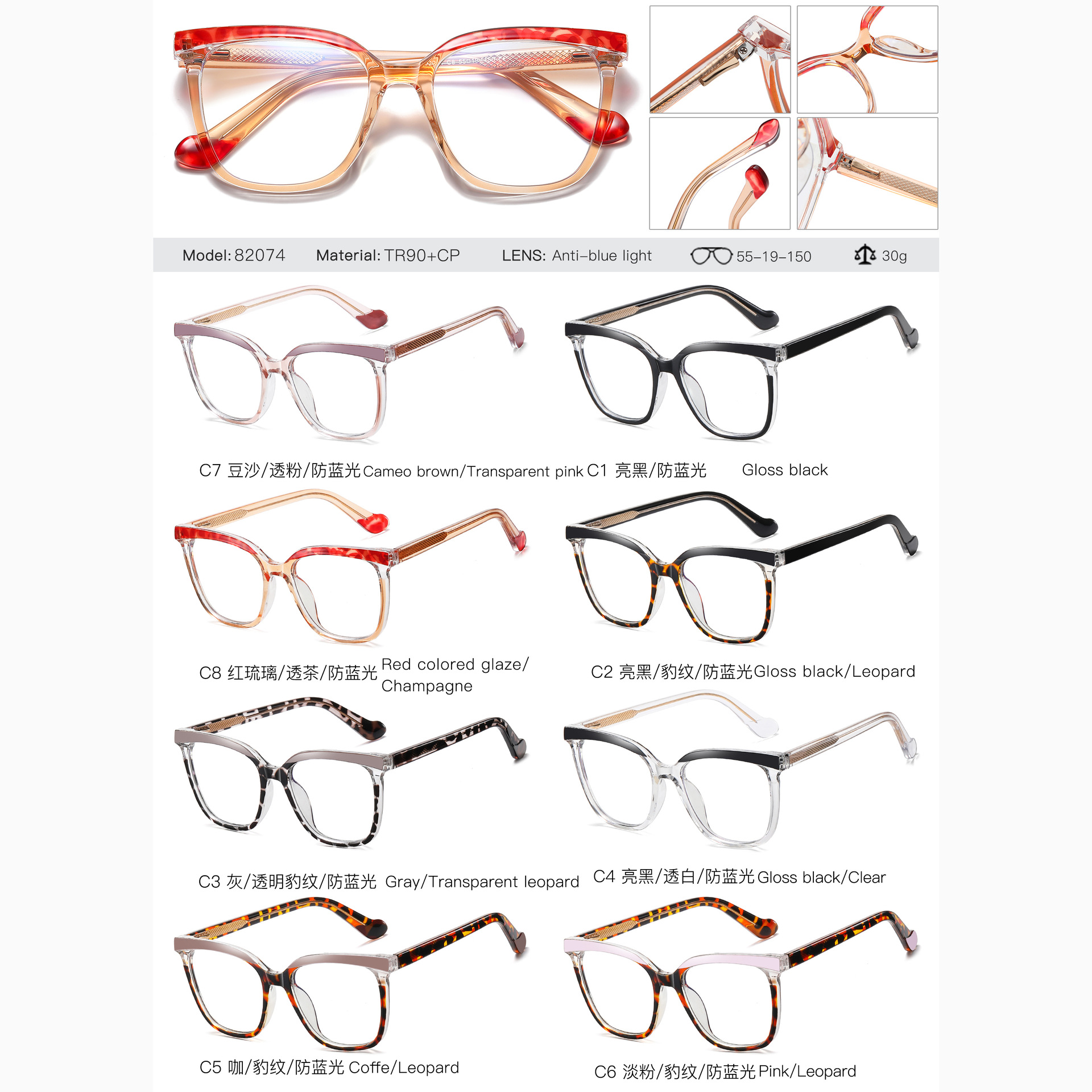 82074 cross-border manufacturers TR90 anti-blue glasses frame European and American style design large frame cat’s eye with myopia flat lens