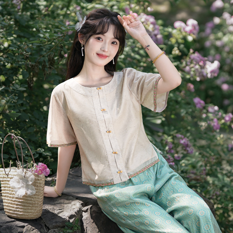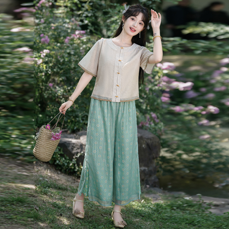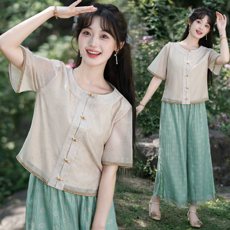| nameOriginal | 8598# New Chinese Improved Chinese Elements Retro Summer Literary Fresh Jacket Fairy Wide Leg Pants Casual suit |
