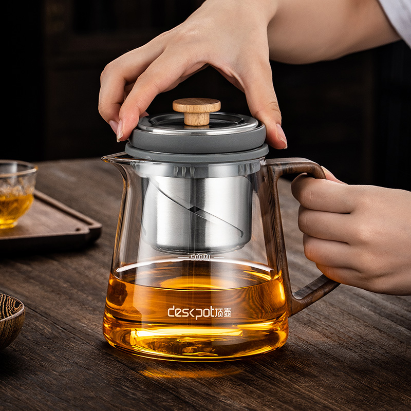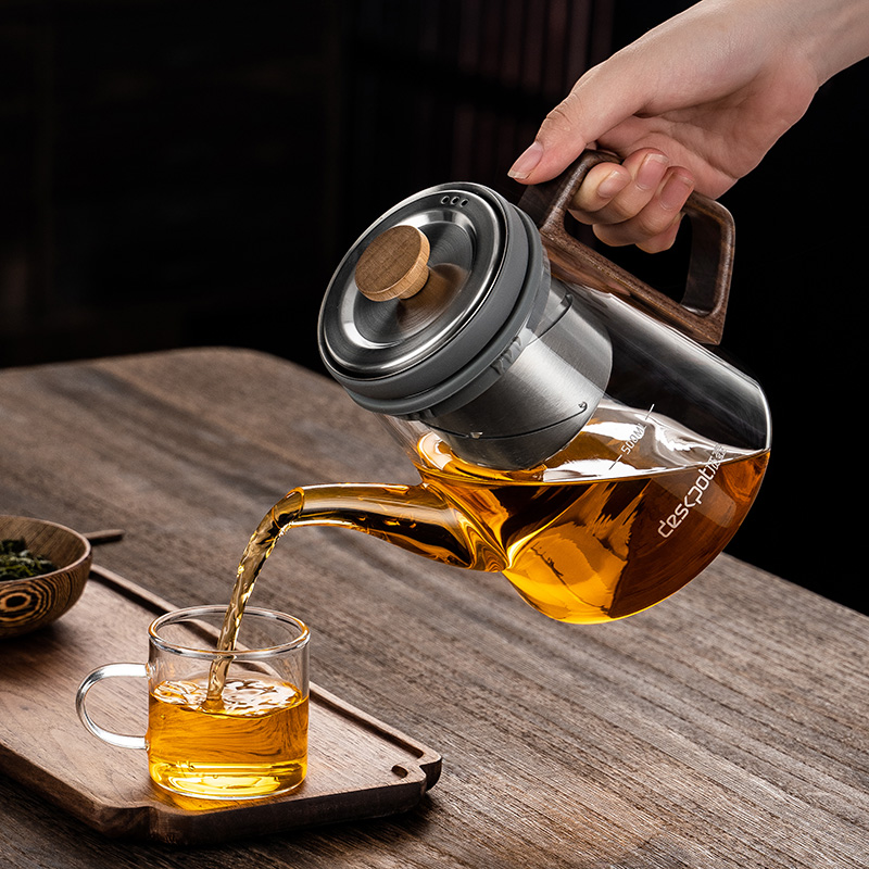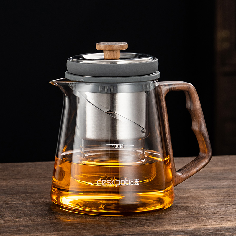 86M0 Full Glass Liner Piaoyi Cup Teapot Household Walnut Rotary Lifting Tea Separating Tea Cup Office