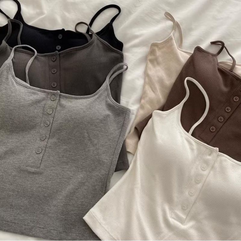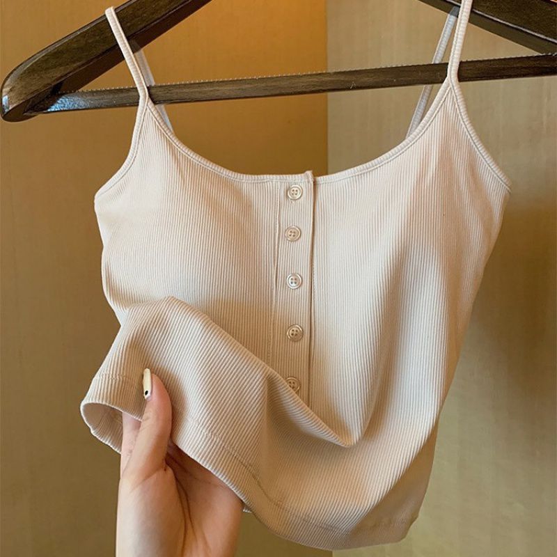| nameOriginal | 8820# Pure Desire Button Sling Beautiful Back Vest Western Style Joker Outer Wear Top Slim Slim Threaded Fixed Cup |
