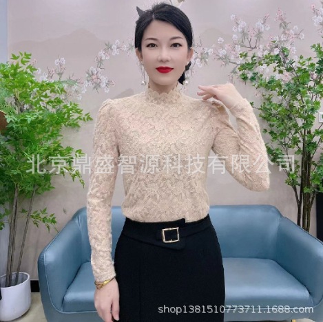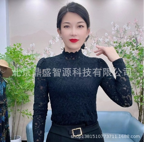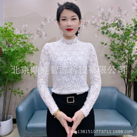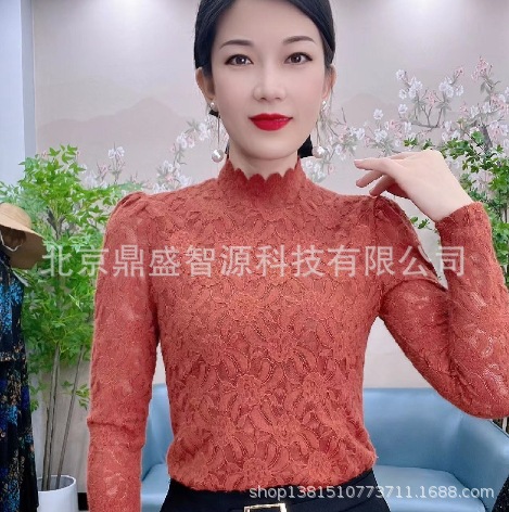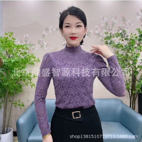 8858 new women's warm bottoming shirt half turtleneck top jacquard autumn and winter slim fit