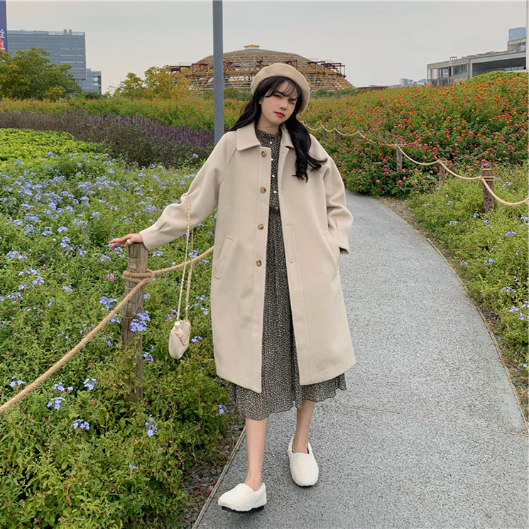 8891# thickened woolen coat women’s overcoat mid-length autumn and winter trench coat small