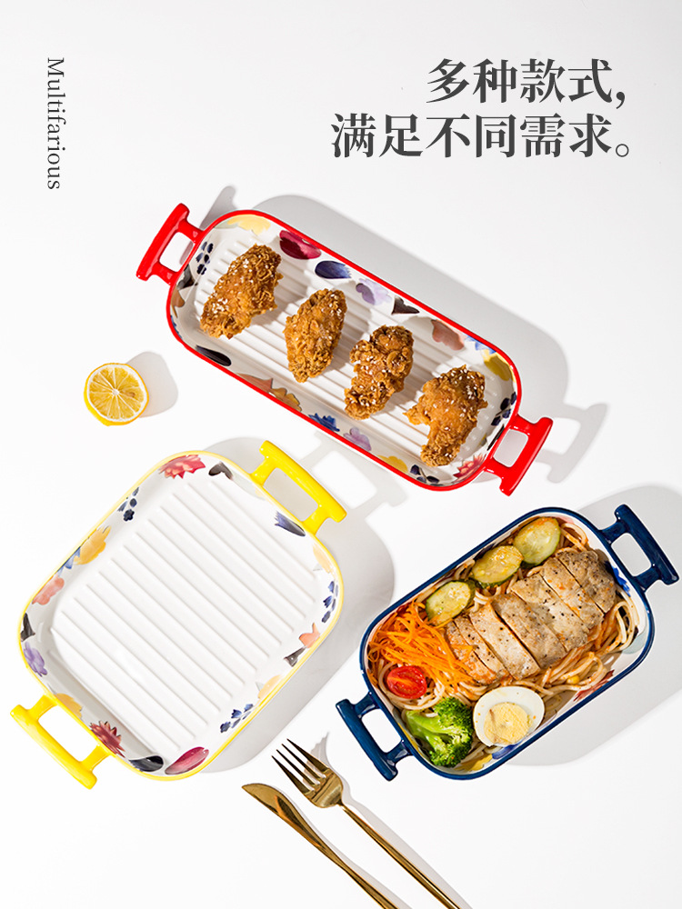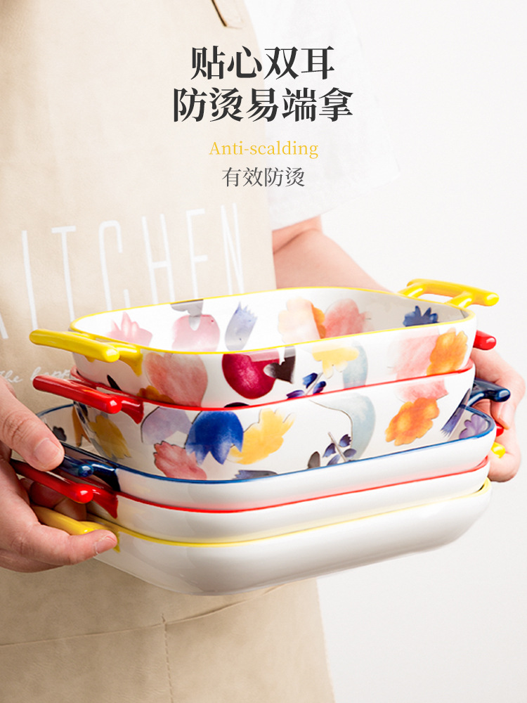 | nameOriginal | 88PD wholesale ink color flower rectangular ceramic baking pan baked rice plate household dish binaural microwave oven |